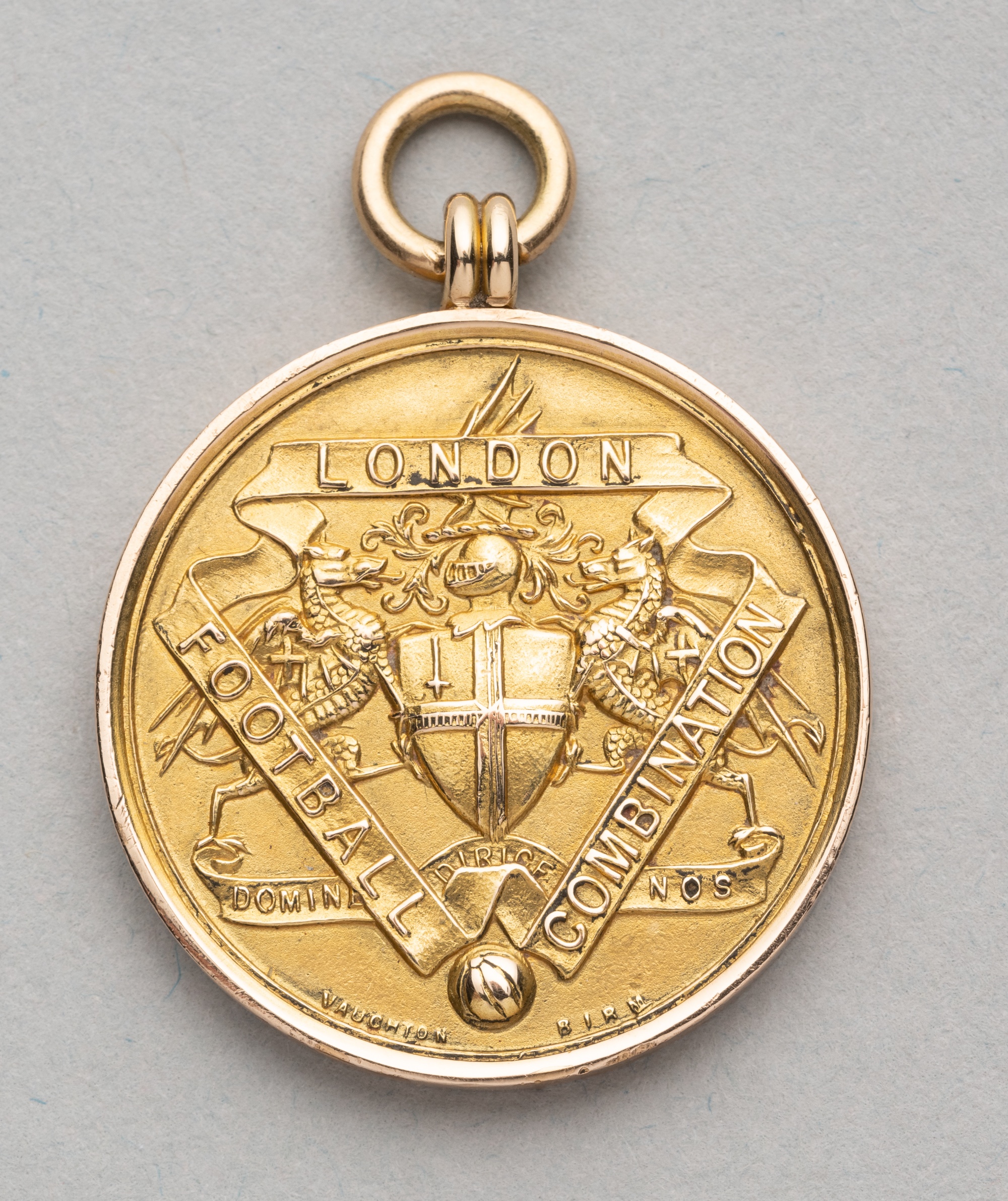 London Football Combination 1926-27 winner's medal awarded to Arsenal's Andy Young, obverse with LONDON FOOTBALL COMBINATION surrounding crest, reverse engraved ARSENAL F.C. WINNERS A. YOUNG 1926-27, with suspension ring, 15ct gold, Birmingham 1926 by Vaughton & Sons, diameter 28mm., weight 20gms., in a fitted case Arsenal won the league on 64 points three points above Leicester City.