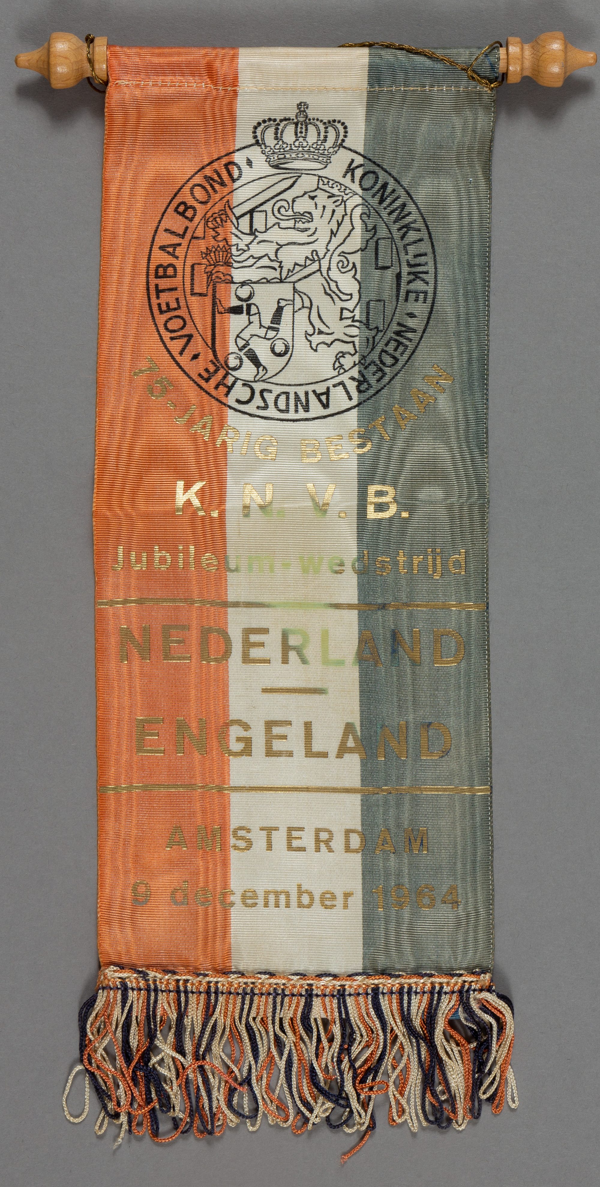 A pennant for the Netherlands v England international match played in Amsterdam 9th December 1964 originally owned by Sir Alf Ramsey, fully inscribed Provenance: Acquired by Coffer Sports from Sir Alf Ramsey.
