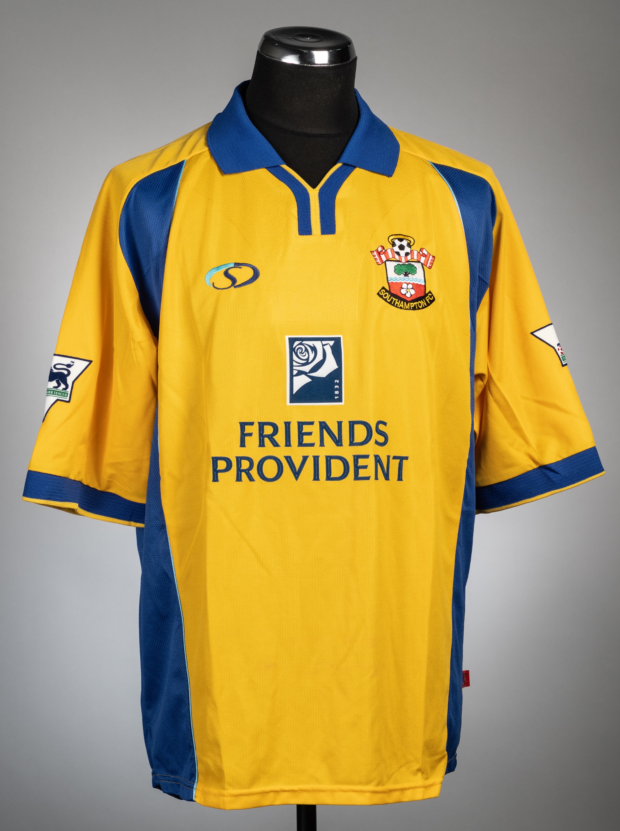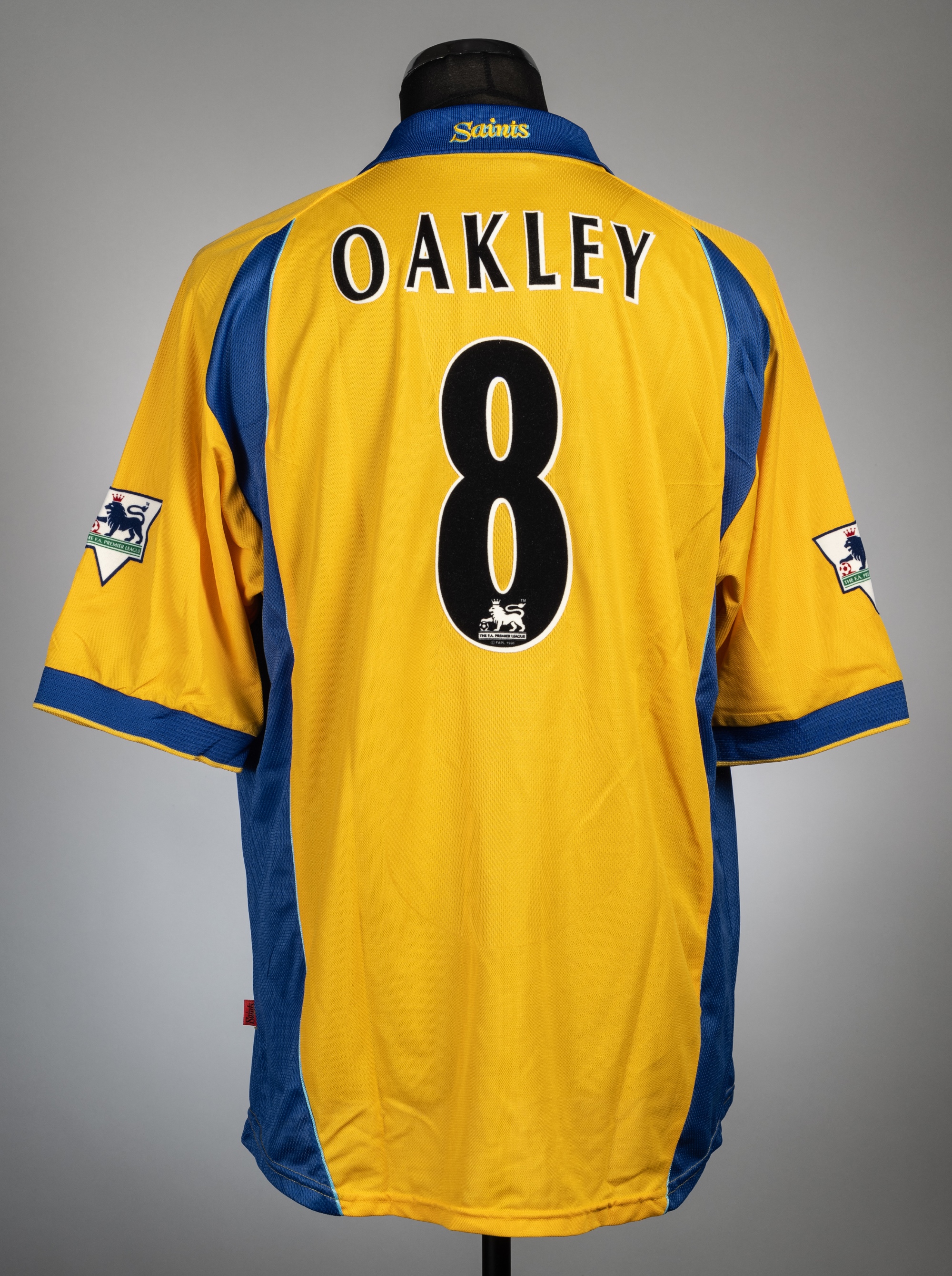 Matt Oakley yellow Southampton No.8 third choice jersey, season 2001-02, Sportswear, short-sleeved, Premier League badges, reverse lettered OAKLEY