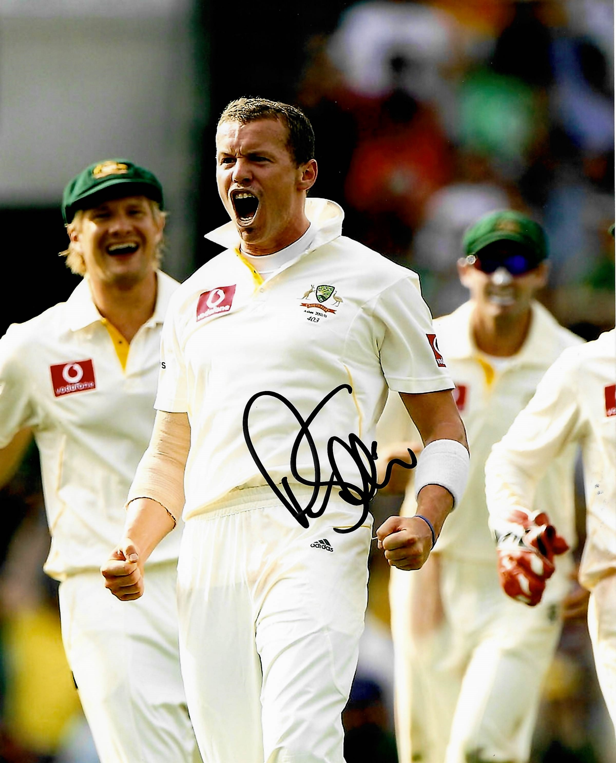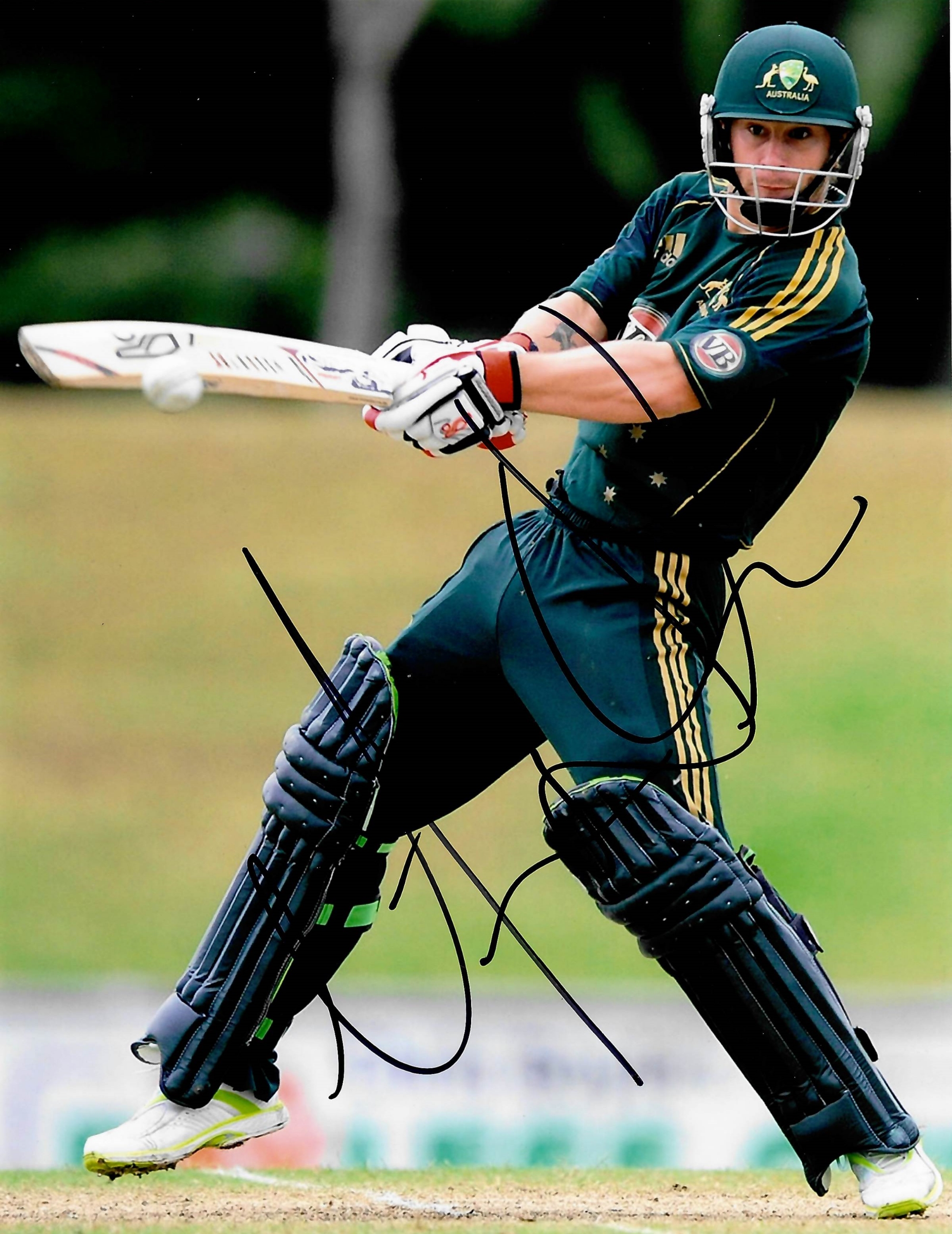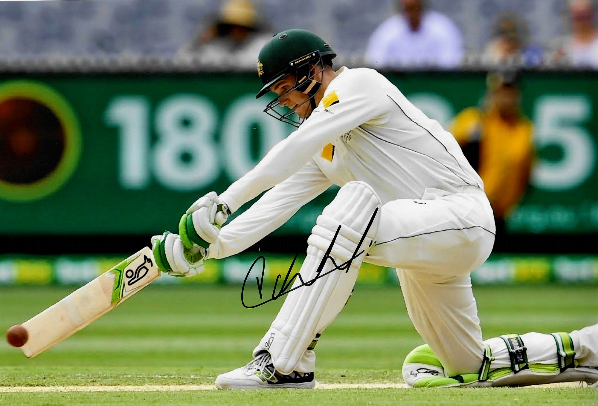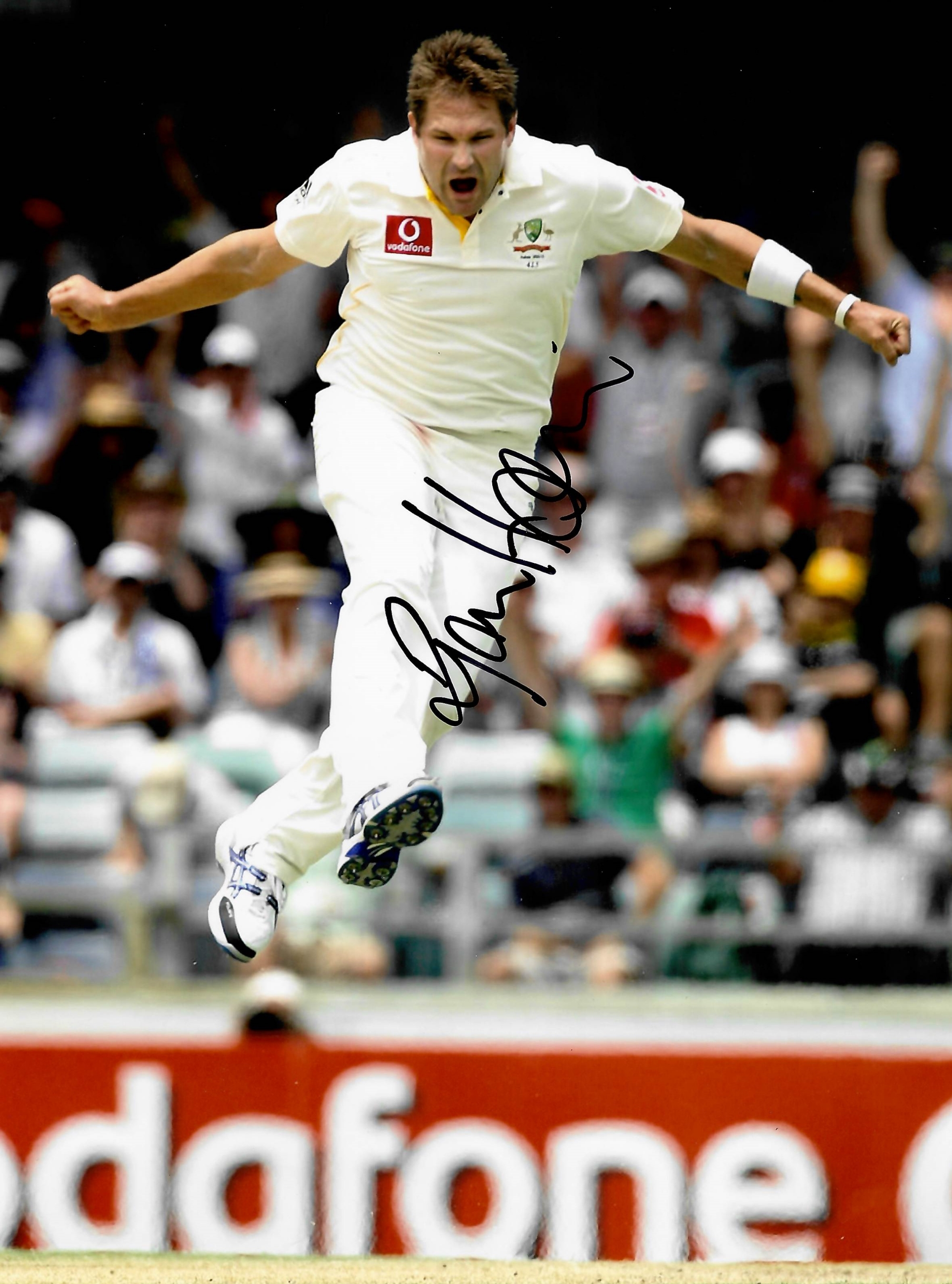 Australian Cricket Collection of signed photographs, including Ricky Ponting, Steve Smith, Mitchell Johnson, Shane Watson, Peter Siddle, Nathan Lyon, all 8 by 10in., Shane Warne, David Warner, Ryan Harris, Matthew Wade, Shaun Marsh, Peter Handscombe, Adam Gilchrist, Mike Hussey , D’Arcy Short, all 8 by 12in., with COA and photo proof of signing, (15)