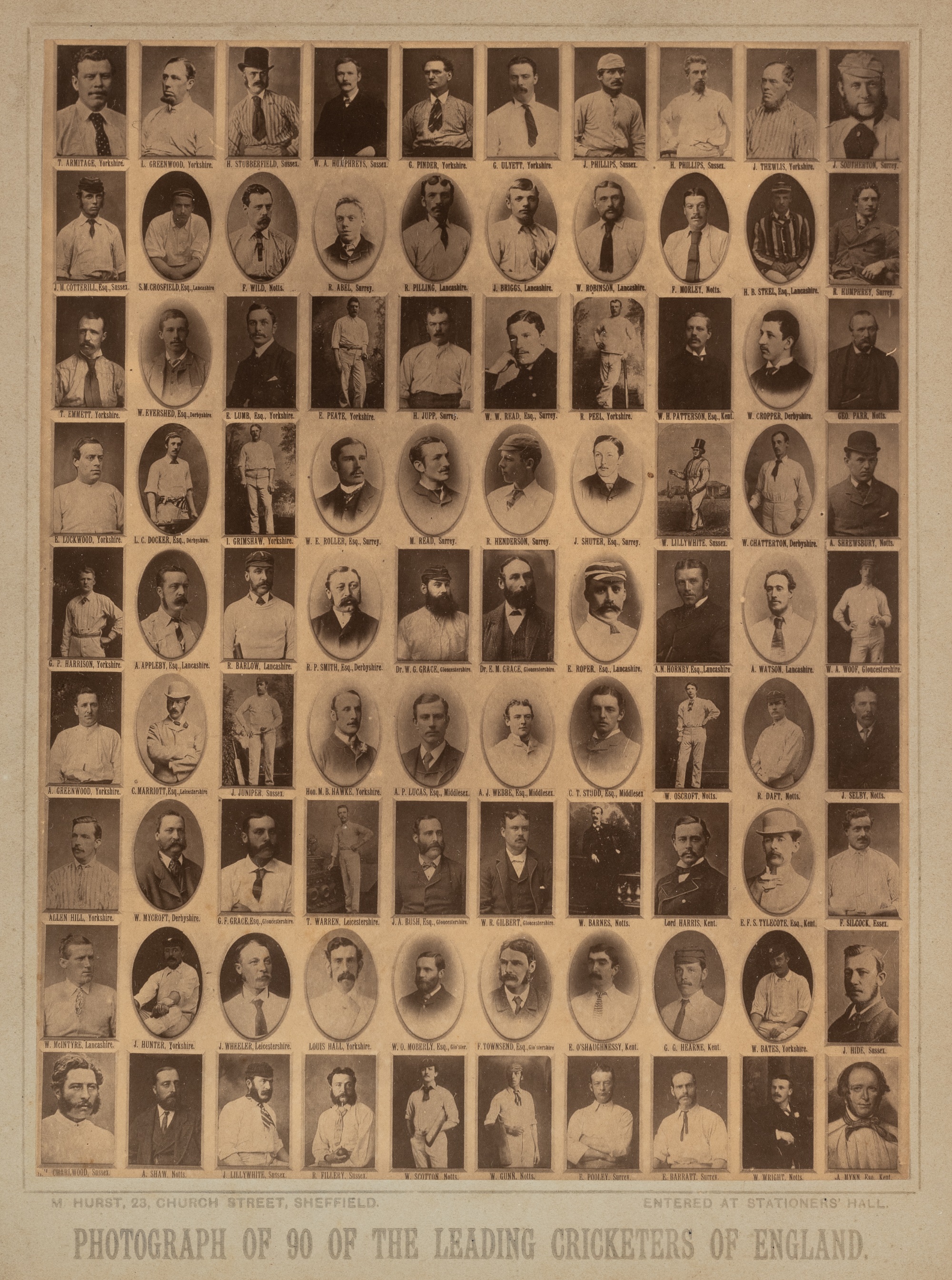 A rare composition photograph of 90 of the leading cricketers of England in Victorian times, published by M Hurst of Sheffield, comprising of 90 ind