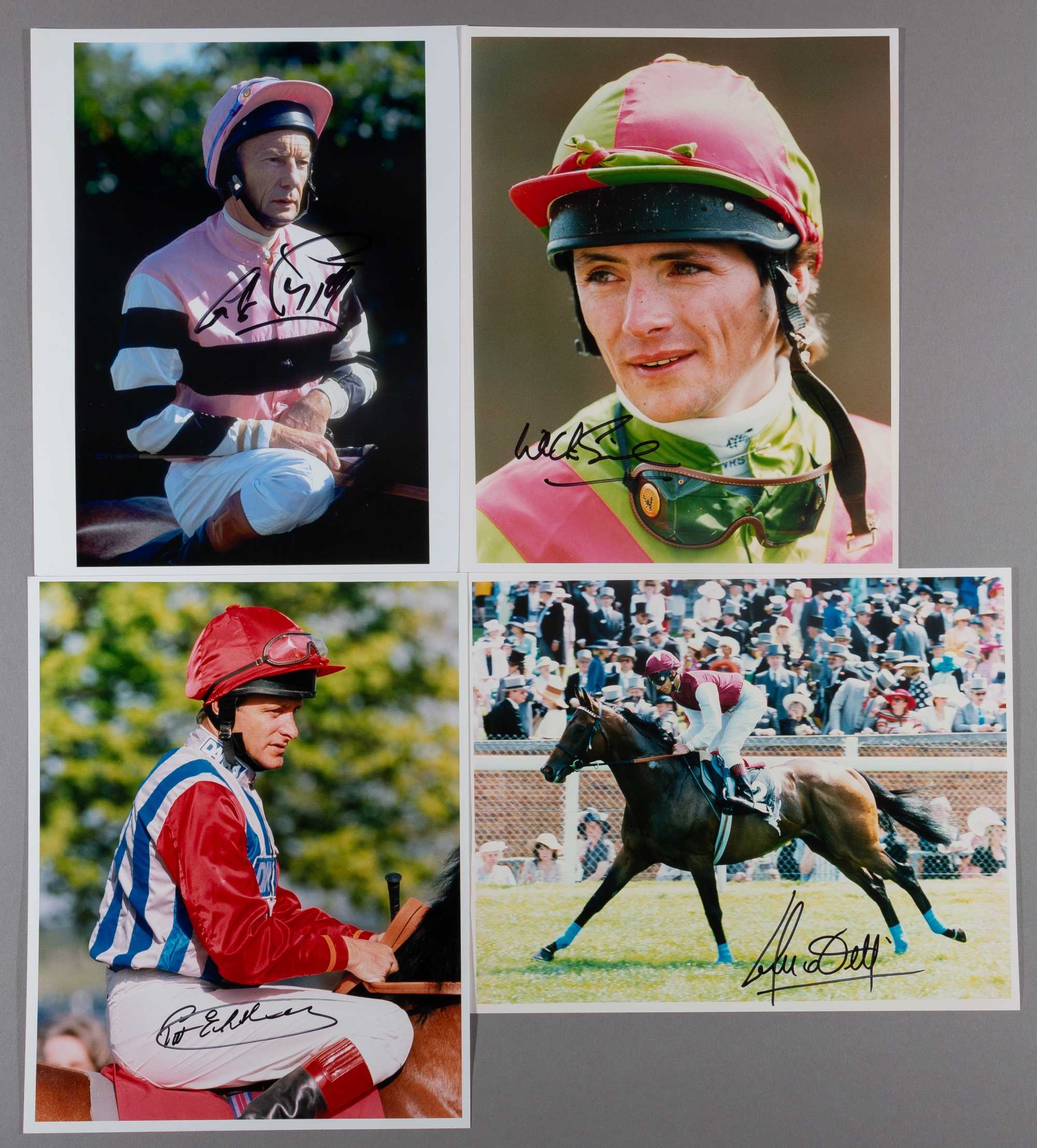 Collection of signed photographs of top flat jockey's and trainers, including Eddery (3), Dettori (4), Piggott (3), Swinburne, Peslier, Fallon (3), M