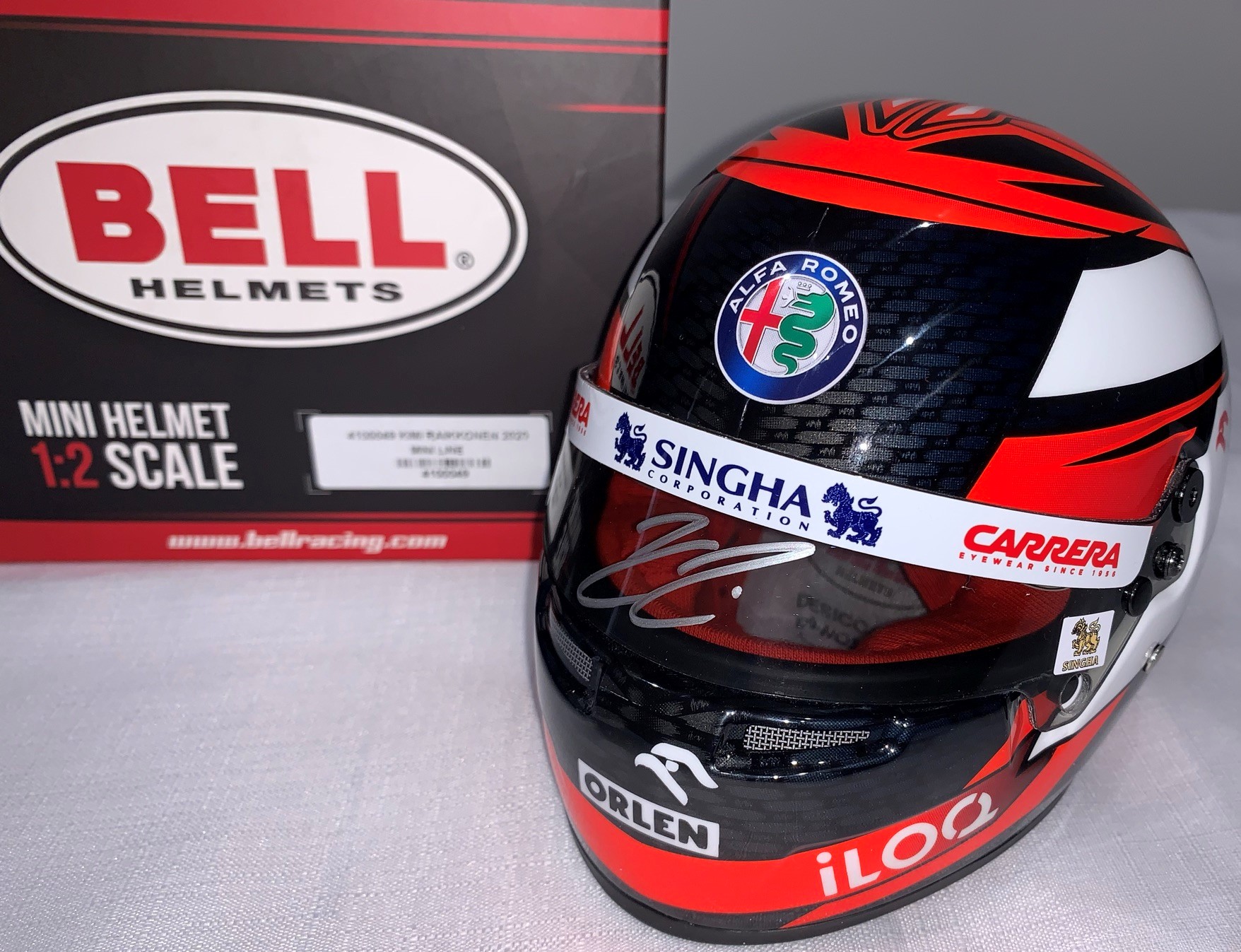 Kimi Räikkönen signed 2020 Alfa Romeo Model Helmet (1:2 Scale), signed on visor with silver sharpie, with COA and photo proof
