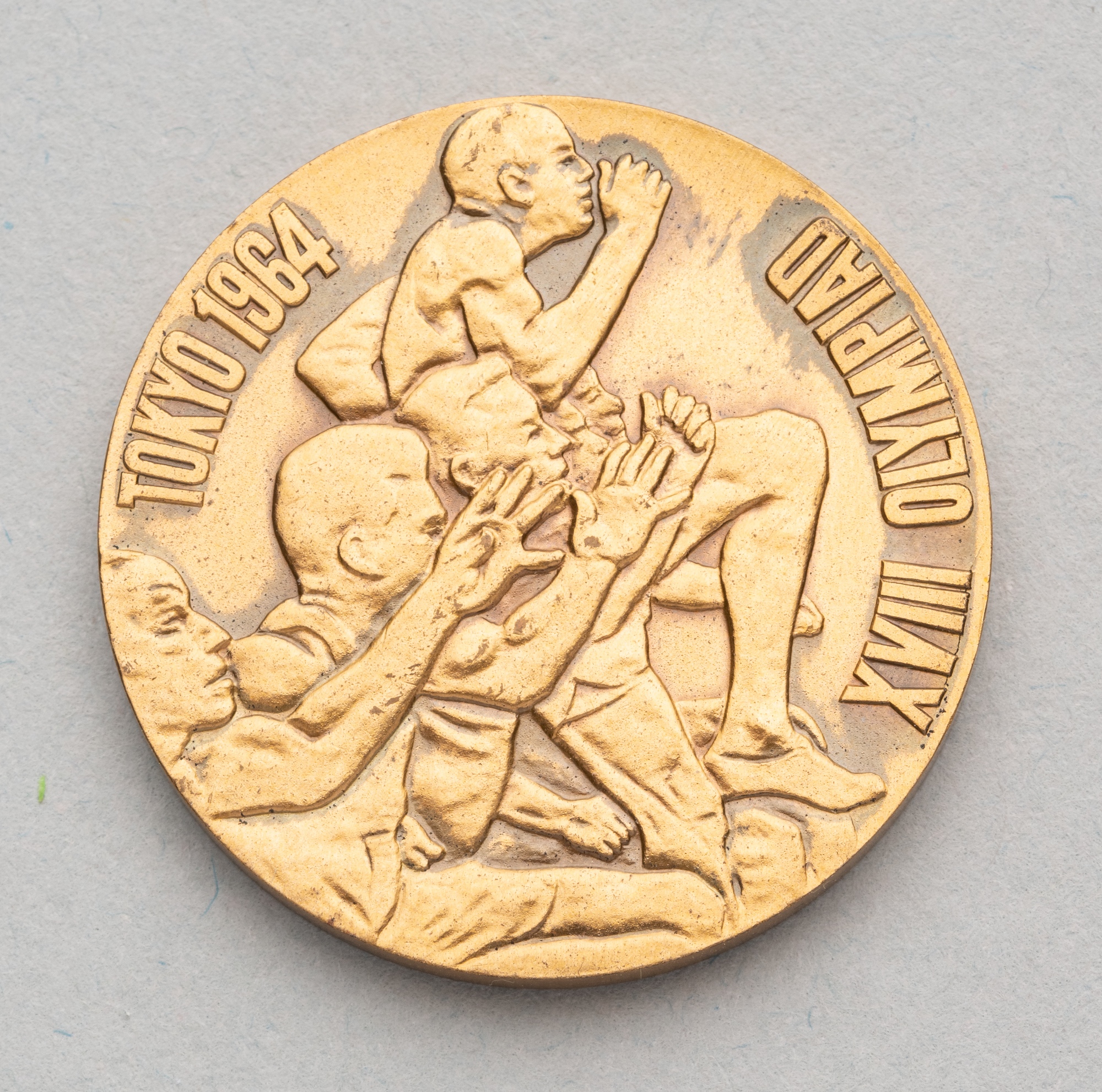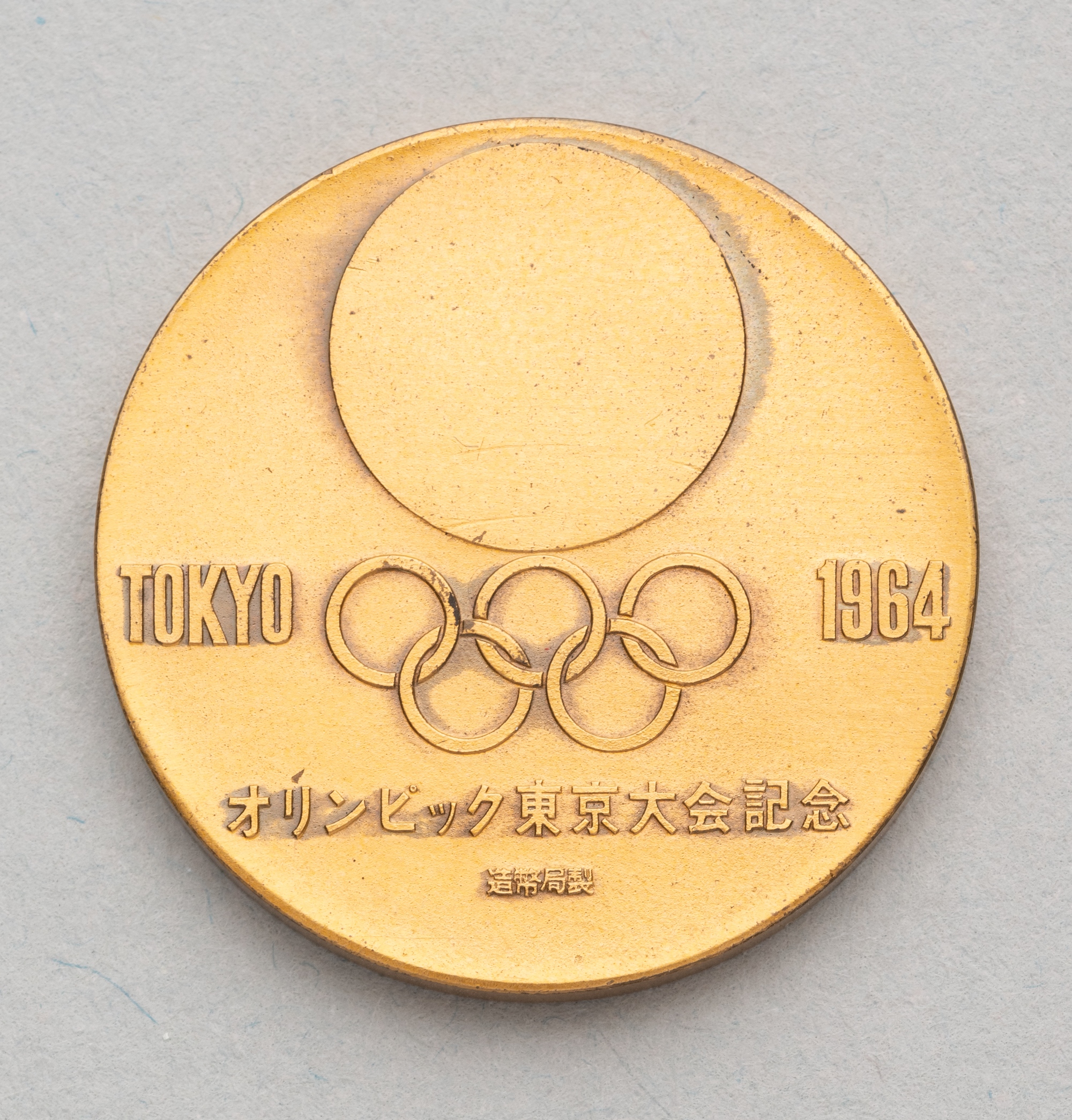 Tokyo 1964 Olympic Games commemorative medal, copper, designed by Yusaku Kamekura, obverse designed with athletes reverse with Olympic logo, issued b