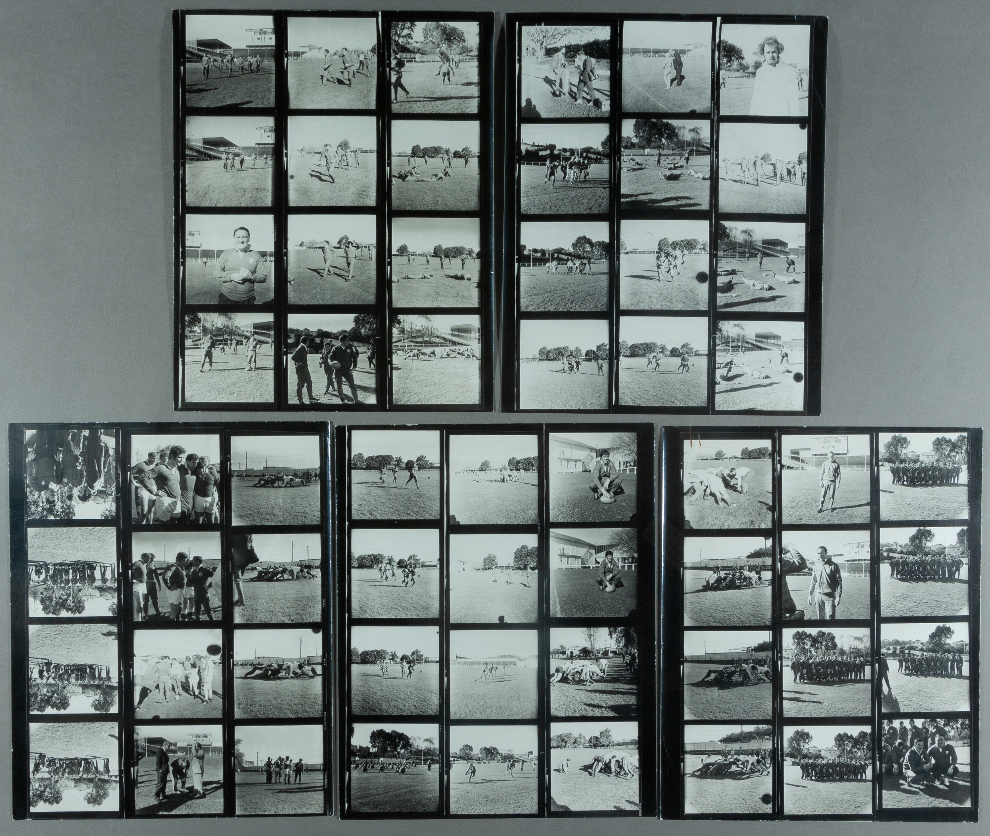 BRITISH LIONS TO NEW ZEALAND 1971 x5 ORIGINAL POSITIVE CONTACT SHEETS EACH COMPRISING 12 ORIGINAL IMAGES OF THE LIONS IN NEW ZEALAND FOR THE HISTORIC 1971 TOUR. A TOTAL OF 60 IMAGES OF THE LIONS ON TOUR PUBLISHED BY THE SOUTH PACIFIC PHOTO SERVICES OF AUCKLAND, NEW ZEALAND. The 1971 tour was a great success, the Lions winning the Test series against the All Blacks. They are still the only Lions side to have won a Test series in New Zealand. The side was captained by John Dawes, coached by Carwyn James and managed by Doug Smith. A TOTAL OF SIXTY ORIGINAL 2 ¼” x 2 ¼” IMAGES SPREAD ACROSS FIVE 10” x 8” CONTACT SHEETS FROM THE 1971 LIONS TOUR TO NEW ZEALAND MAINLY DEPICTING THE LIONS PRACTICING ON TOUR. PUBLISHED BY THE SOUTH PACIFIC PRESS PHOTO SERVICES OF AUCKLAND, NEW ZEALAND. FIVE CONTACT SHEETS ALL IN VERY GOOD CONDITION.