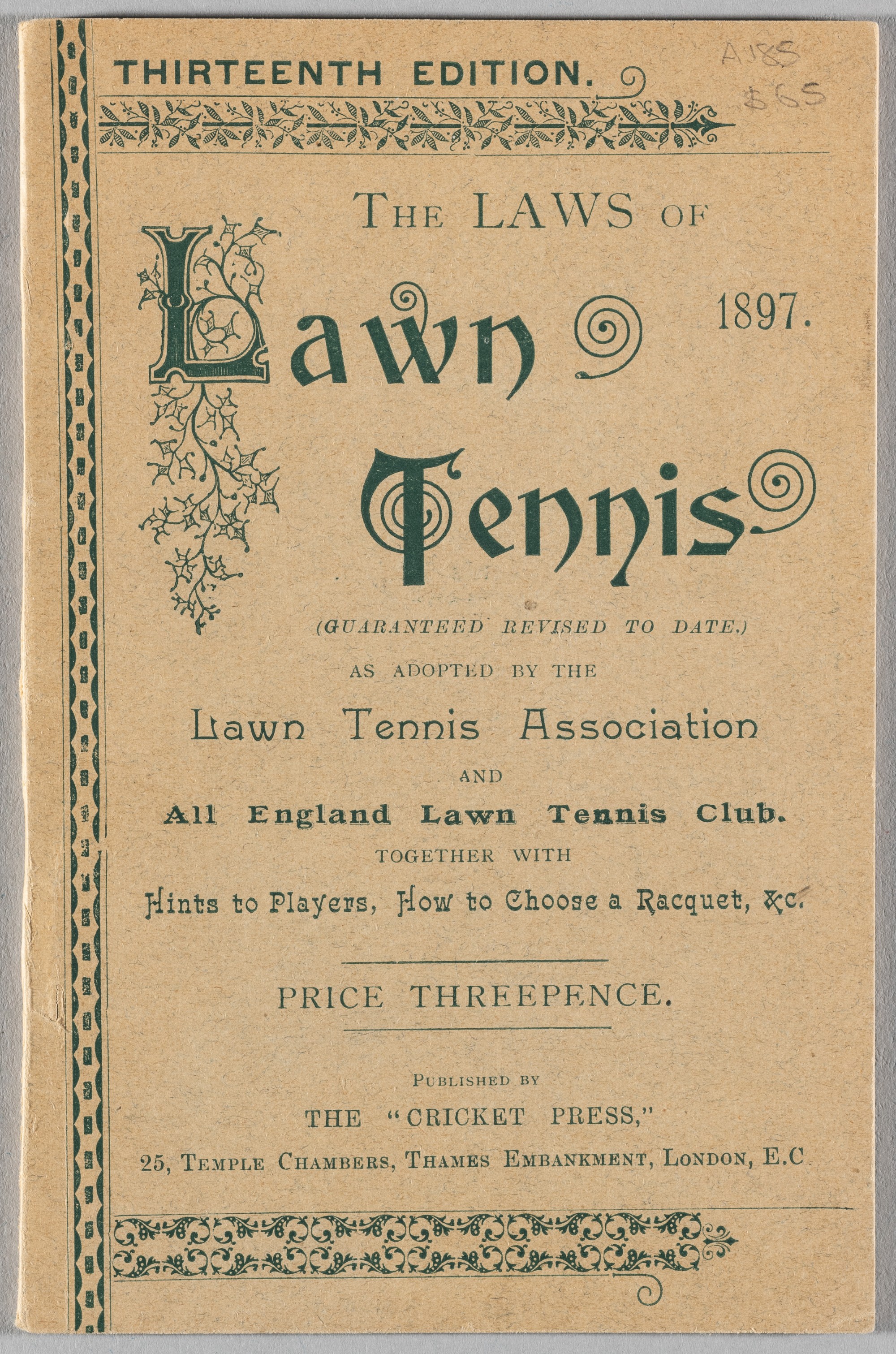 “The Laws of Lawn Tennis” for 1897 as adopted by the Lawn Tennis Association and The All England Club, including hints to players and how to purchas