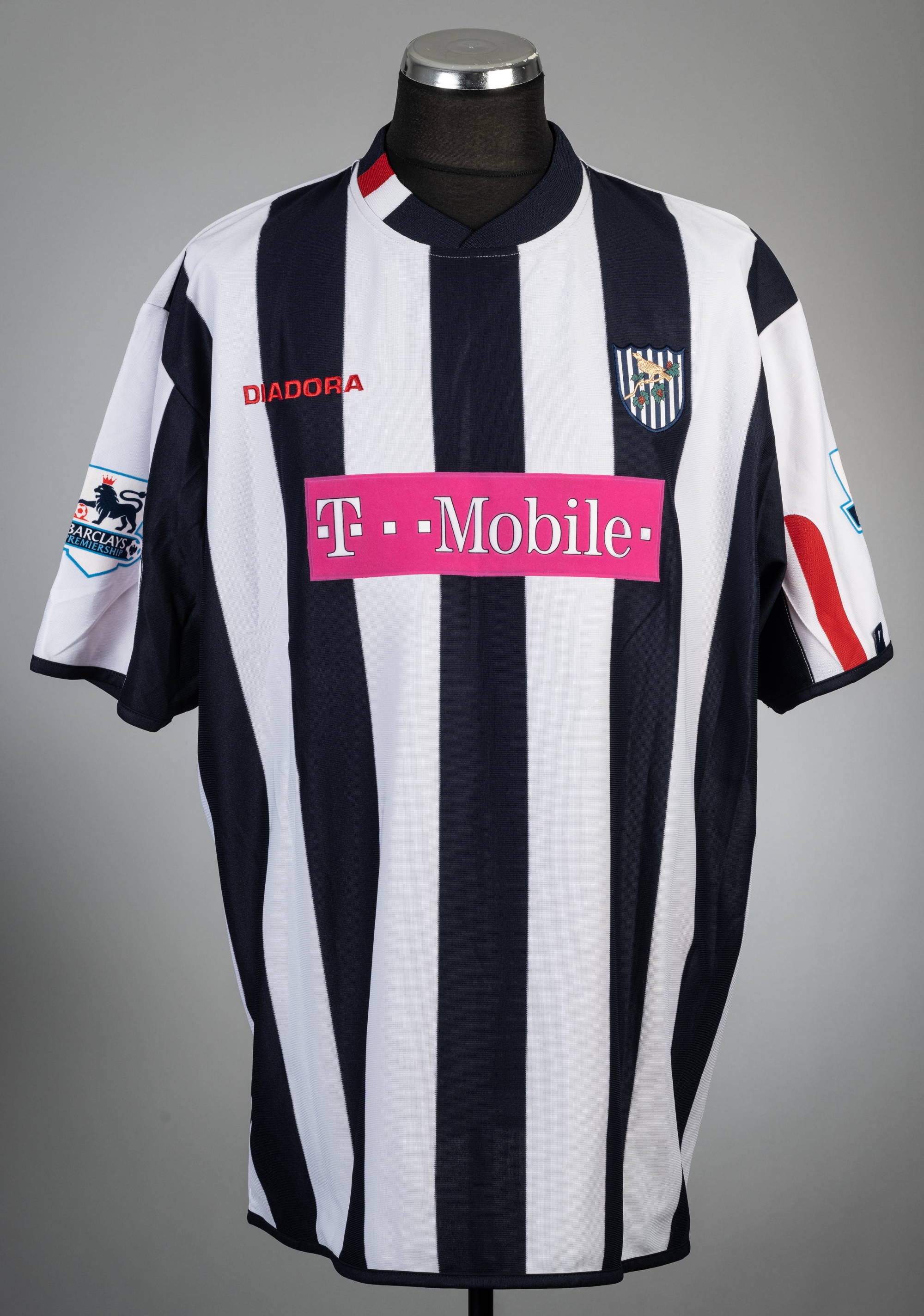 Kanu signed navy and white West Bromwich Albion no.25 home jersey, season 2004-05, Diadora, short-sleeved with BARCLAYS PREMIERSHIP sleeve badges, cl