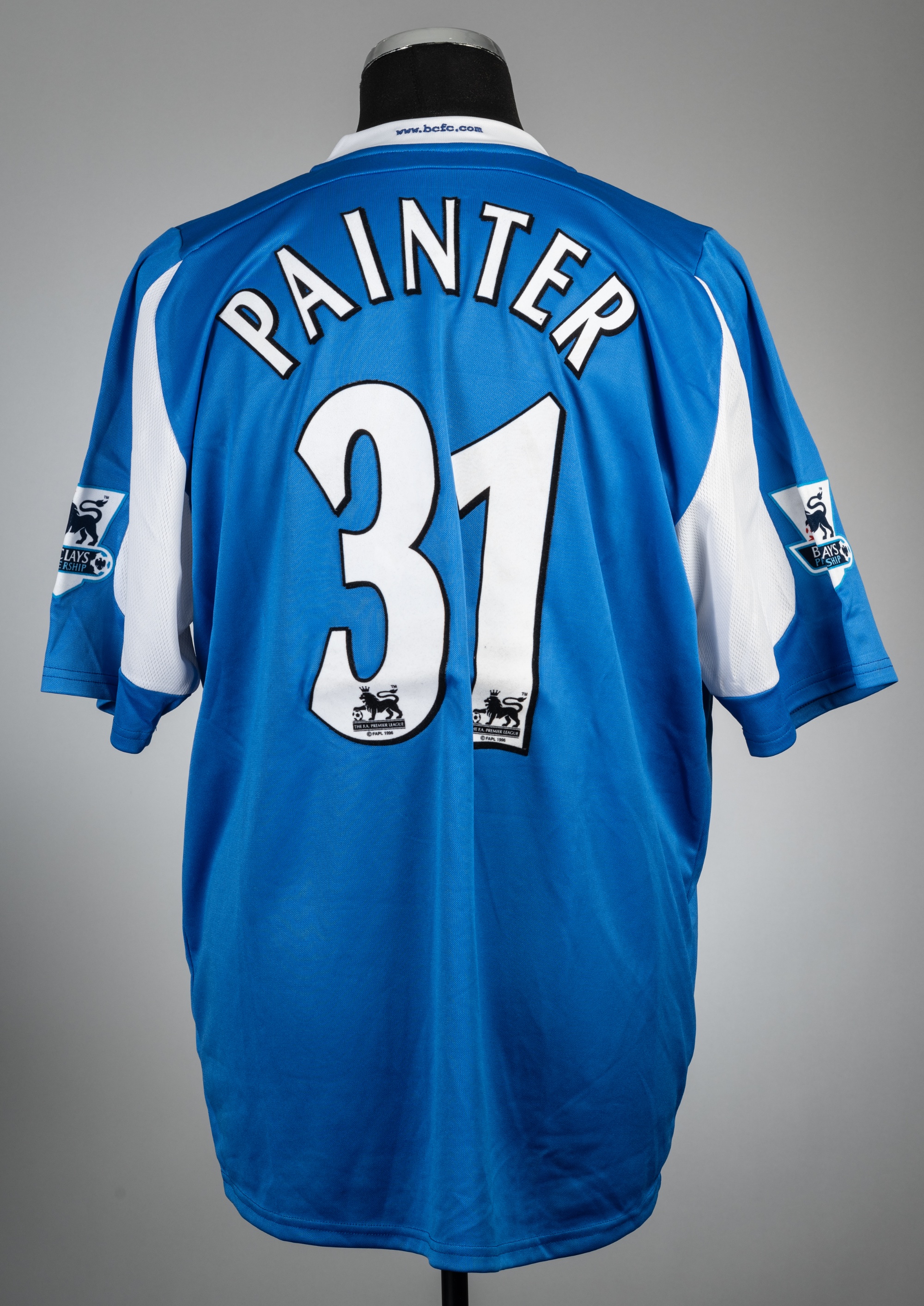 Marcos Painter blue Birmingham City no.31 home jersey, season 2005-06, Lonsdale, short-sleeved with BARCLAYS PREMIERSHIP sleeve badges, club crest and sponsor logo, reverse lettered PAINTER, size XL