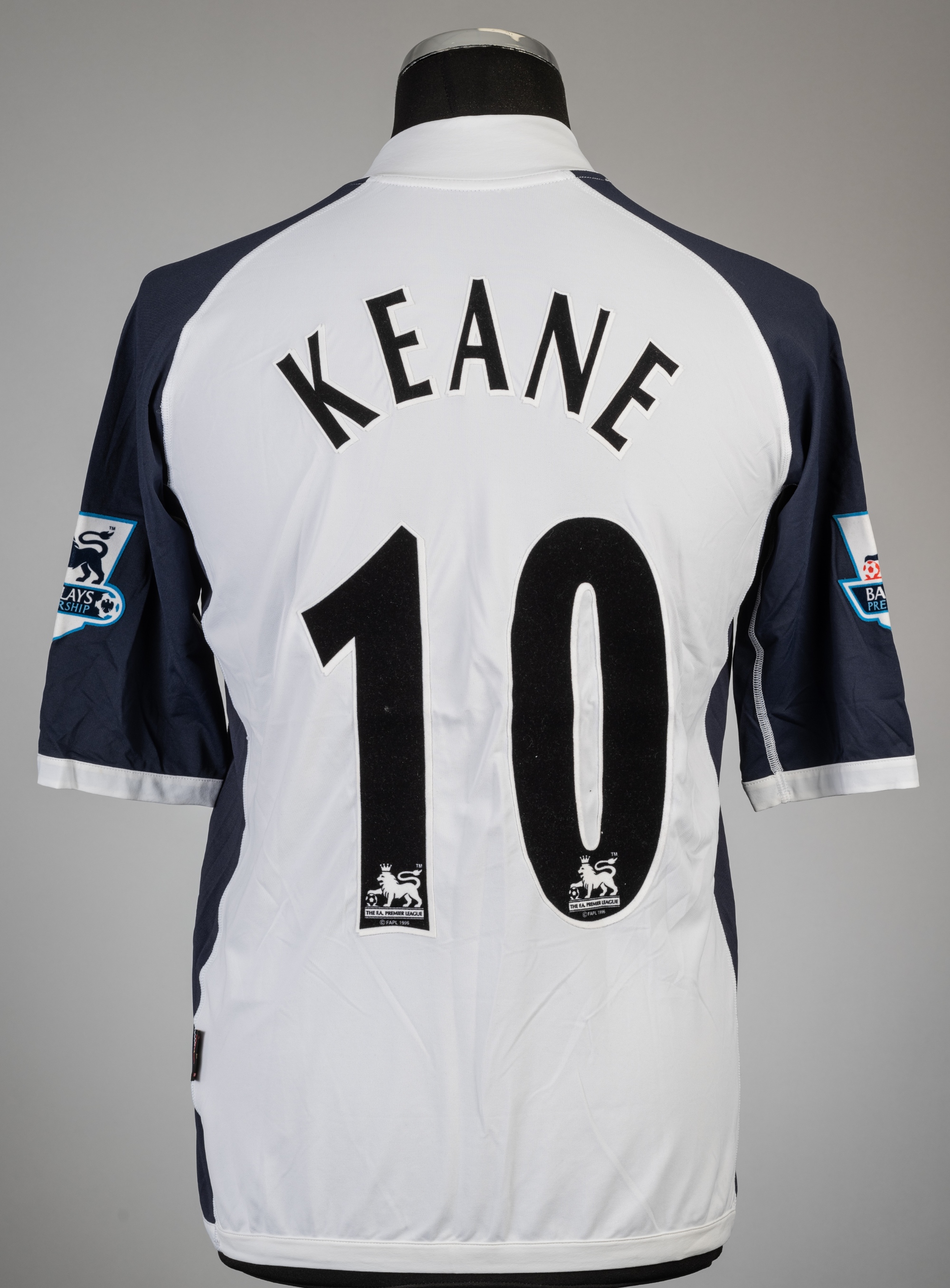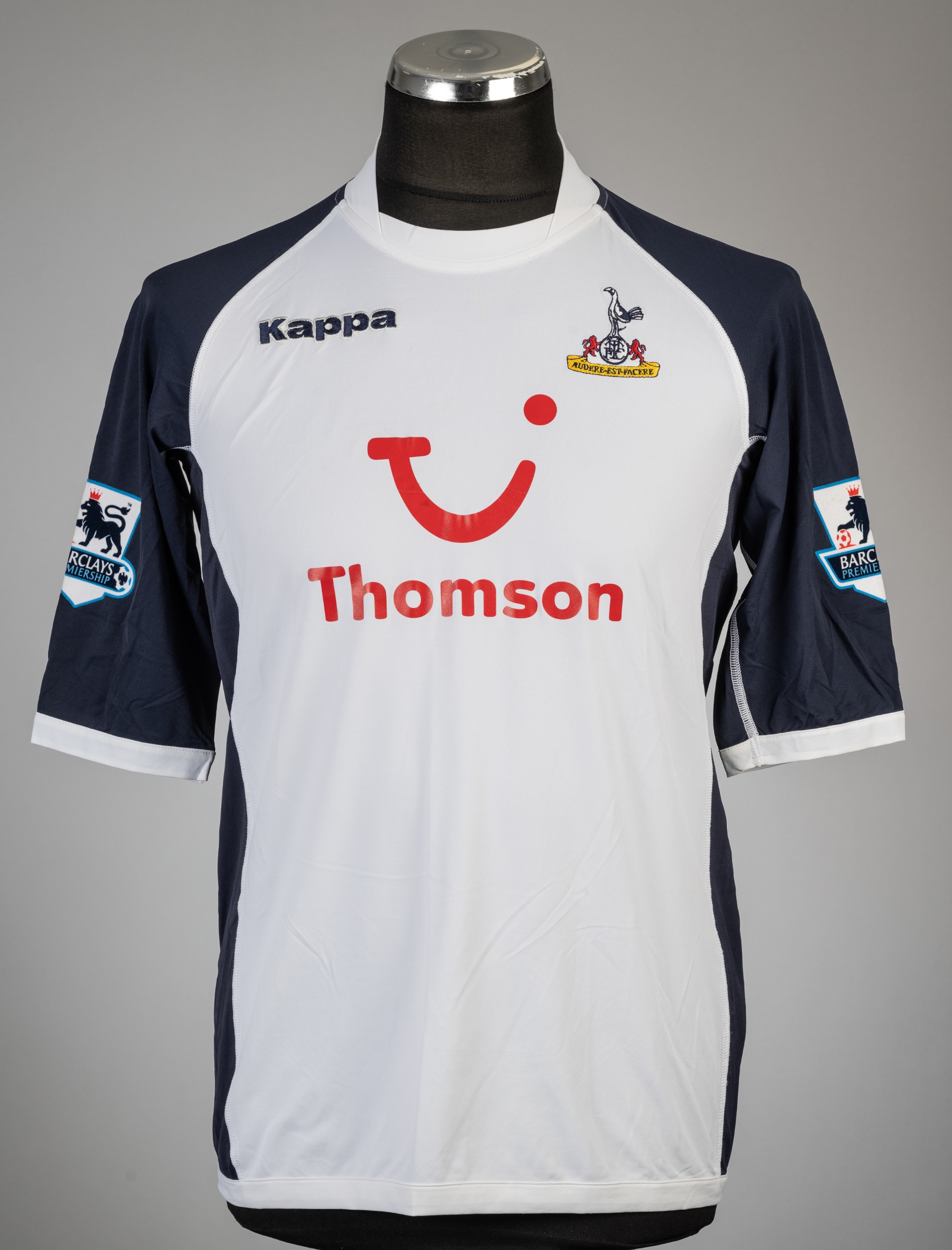 Robbie Keane white Tottenham Hotspur no.10 home jersey, season 2005-06, Kappa, short-sleeved with BARCLAYS PREMIERSHIP sleeve badges, club crest and sponsor logo, reverse lettered KEANE, no size label, bears inner side seam label