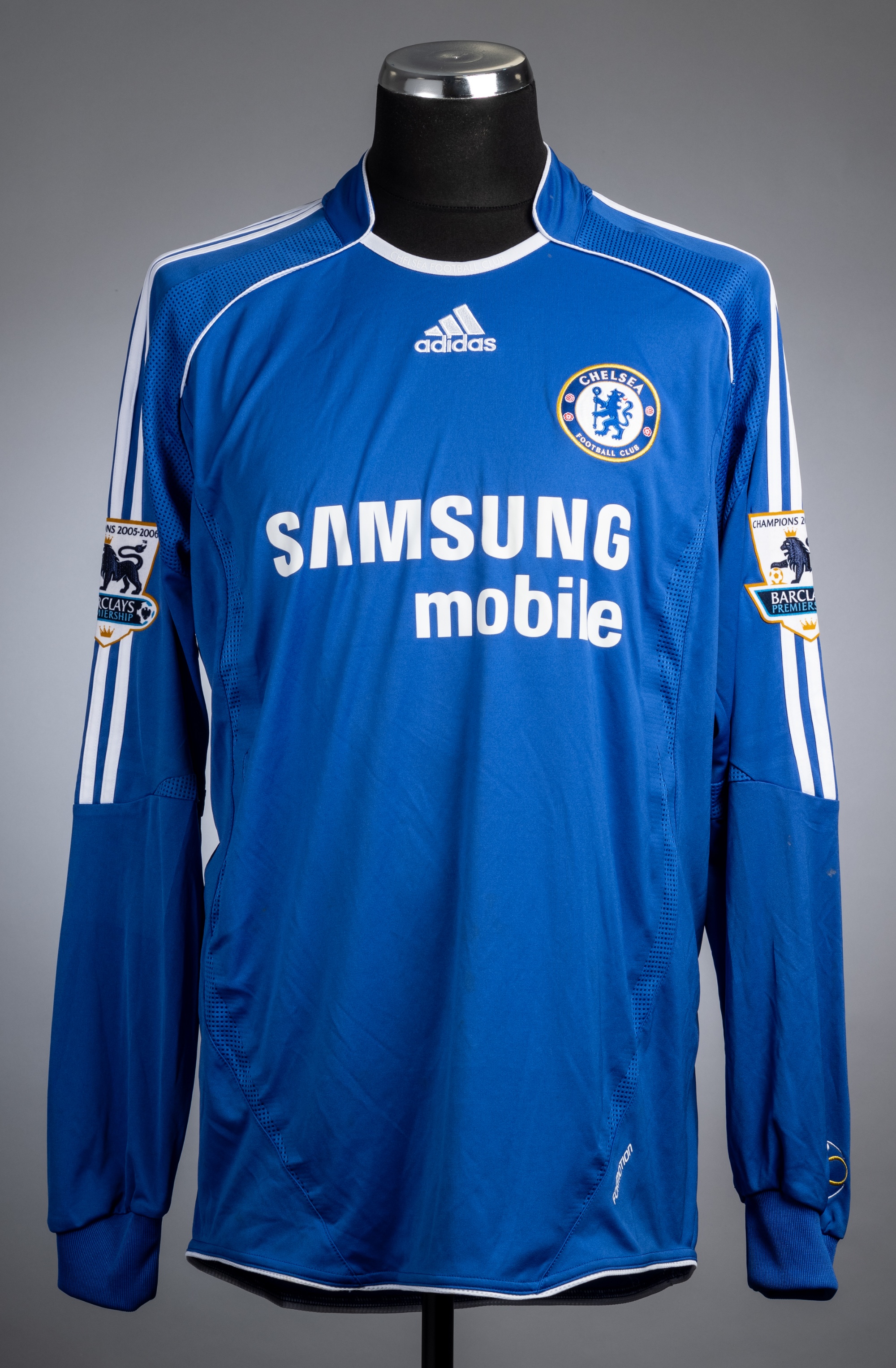 Claude Makelele blue Chelsea no.4 home jersey, season 2006-07, long-sleeved with BARCLAYS PREMIERSHIP CHAMPIONS 2005-2006 sleeve badges, club crest and sponsor logo, reverse lettered MAKELELE Claude Makelele played with Chelsea during 2003-08 making 144 appearances scoring two goals.