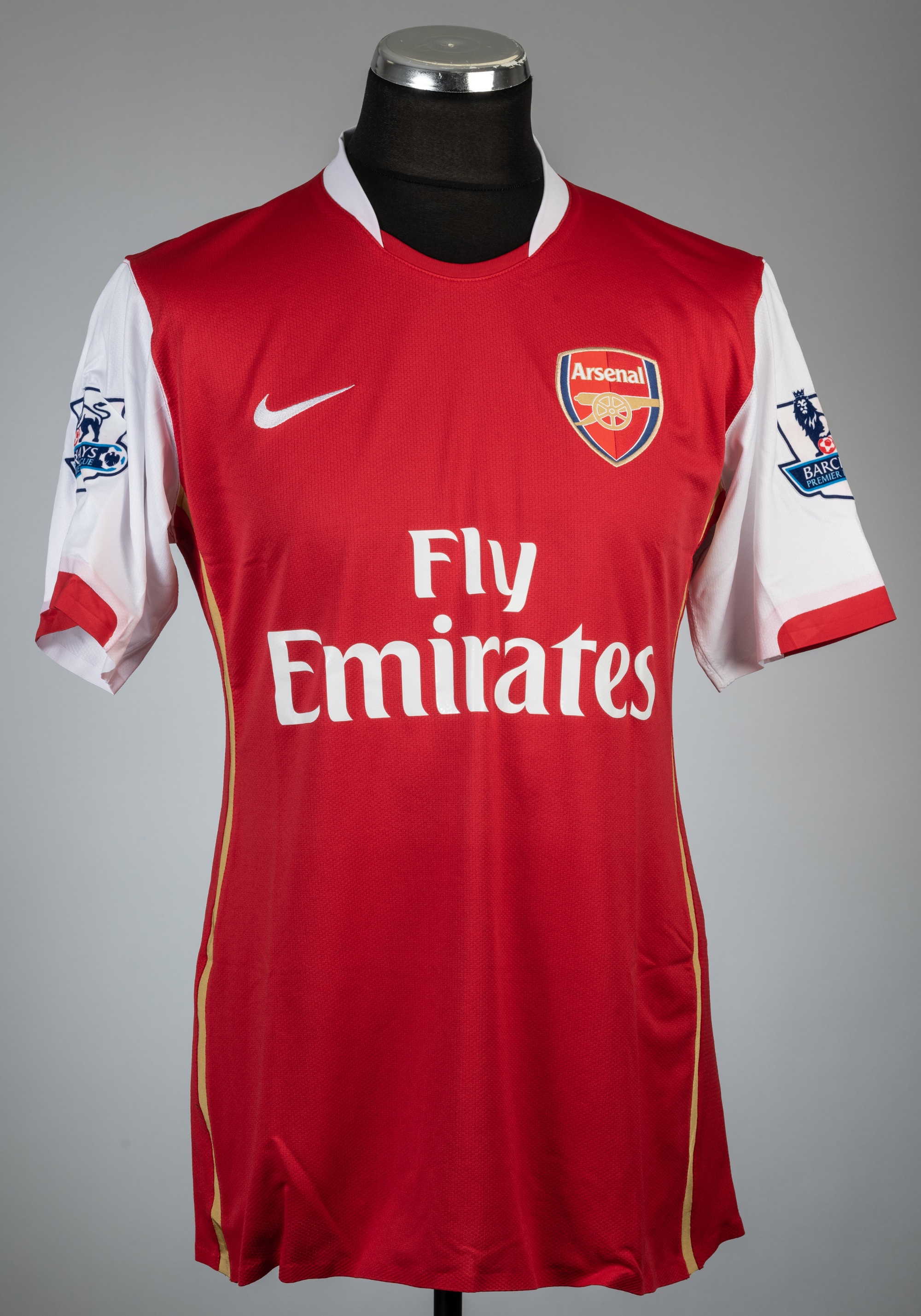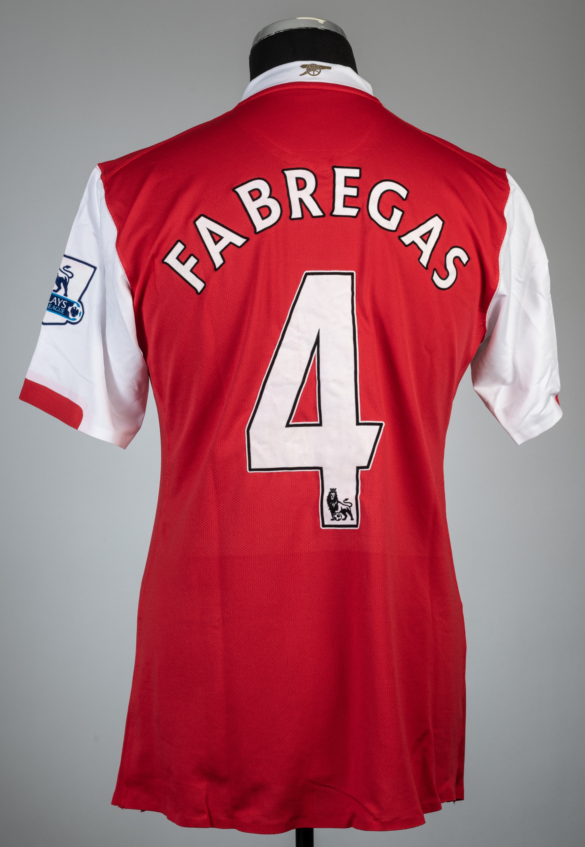 Cesc Fabregas red Arsenal no.4 jersey v Tottenham Hotspur, played at White Hart Lane, 15th September 2007, Nike, short-sleeved with BARCLAYS PREMIER LEAGUE sleeve badges, club crest and sponsor logo, reverse lettered FABREGAS, size L Arsenal defeated Tottenham Hotspur 3-1, with Cesc Fabregas scoring Arsenal's second goal in the 80th minute, wearing a short-sleeved jersey.