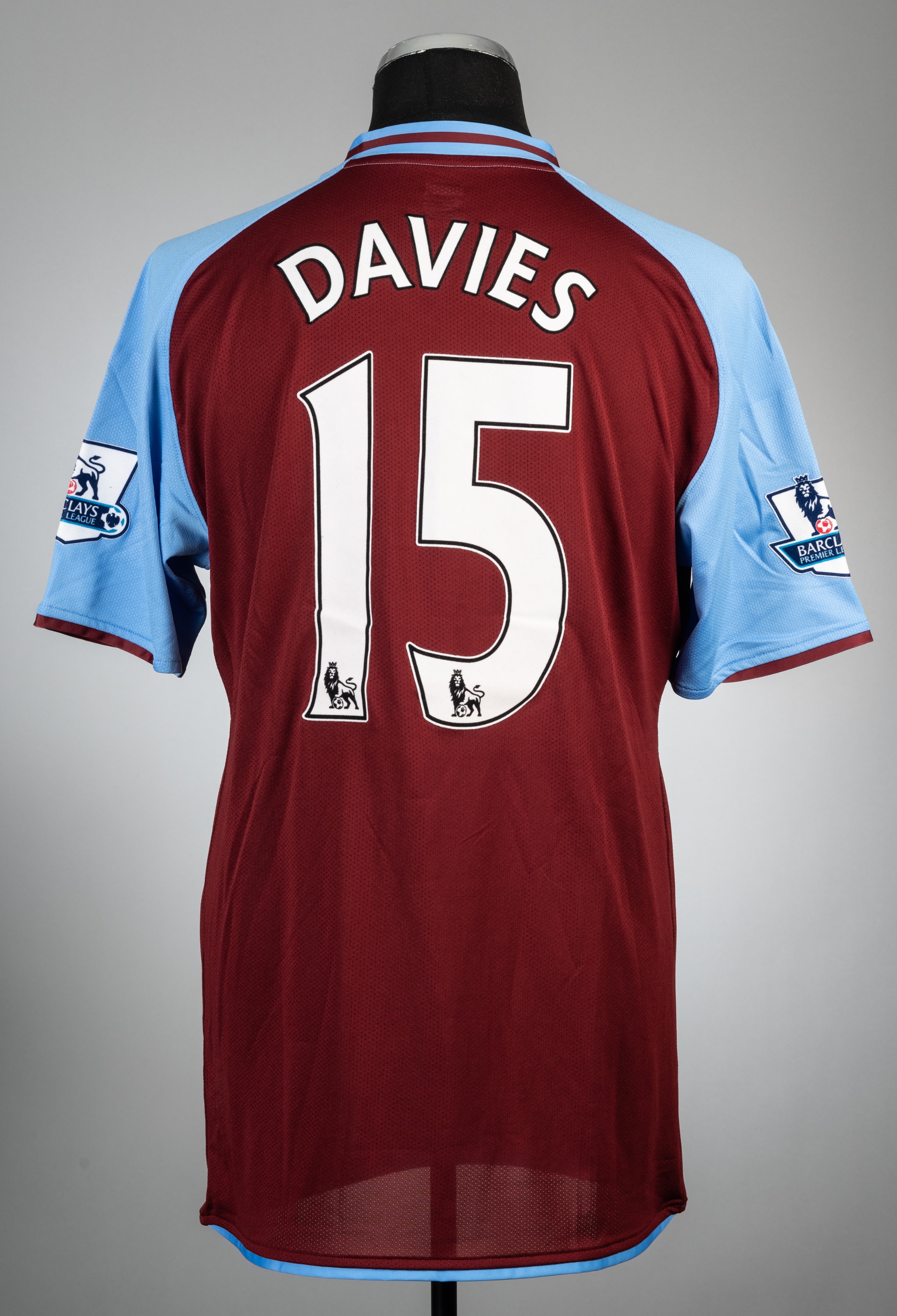 Curtis Davies claret and blue Aston Villa no.15 home jersey, season 2008-09, Nike, short-sleeved with BARCLAYS PREMIER LEAGUE sleeve badges, club crest and sponsor logo, reverse lettered DAVIES, size XL