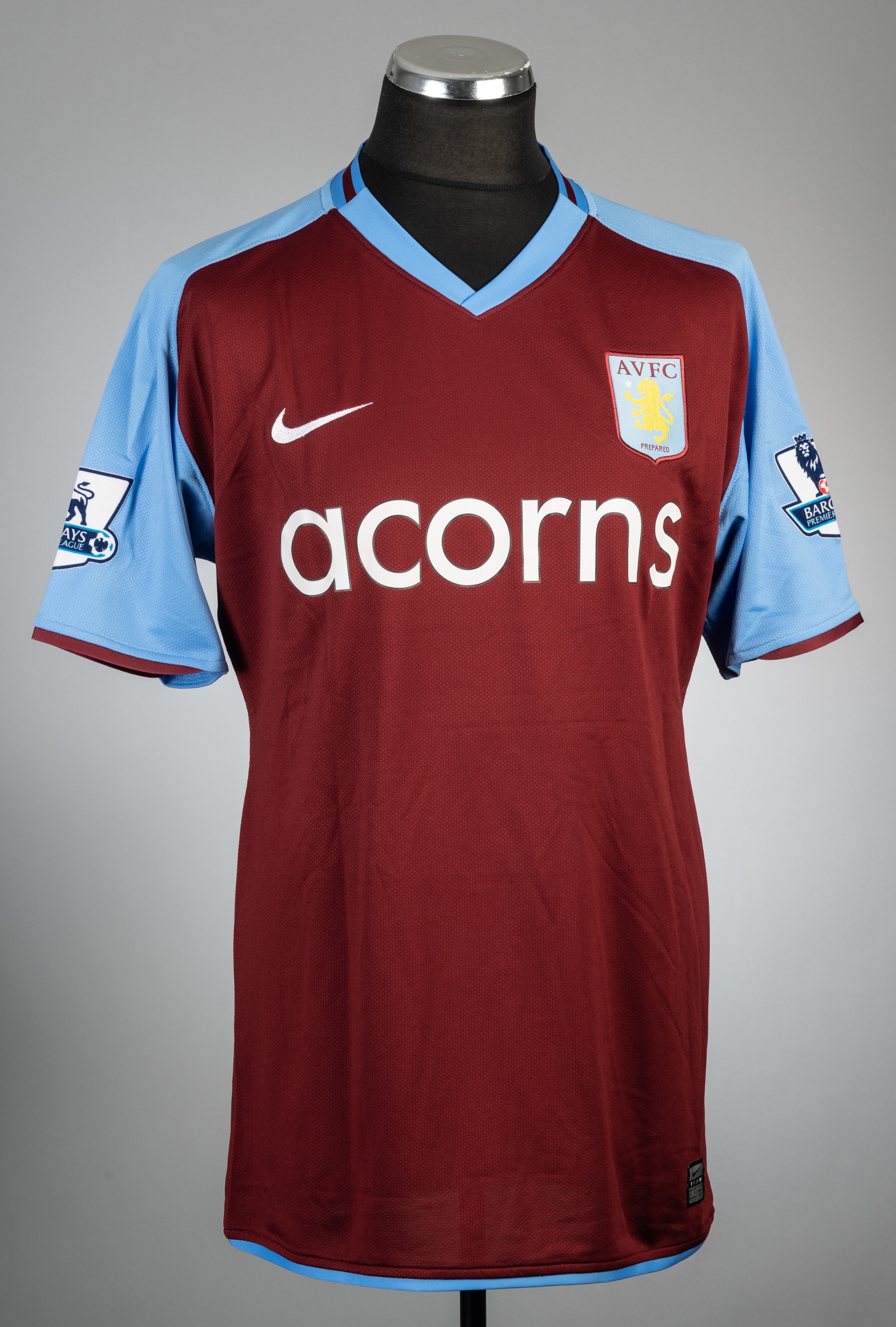 Curtis Davies claret and blue Aston Villa no.15 home jersey, season 2008-09, Nike, short-sleeved with BARCLAYS PREMIER LEAGUE sleeve badges, club cre