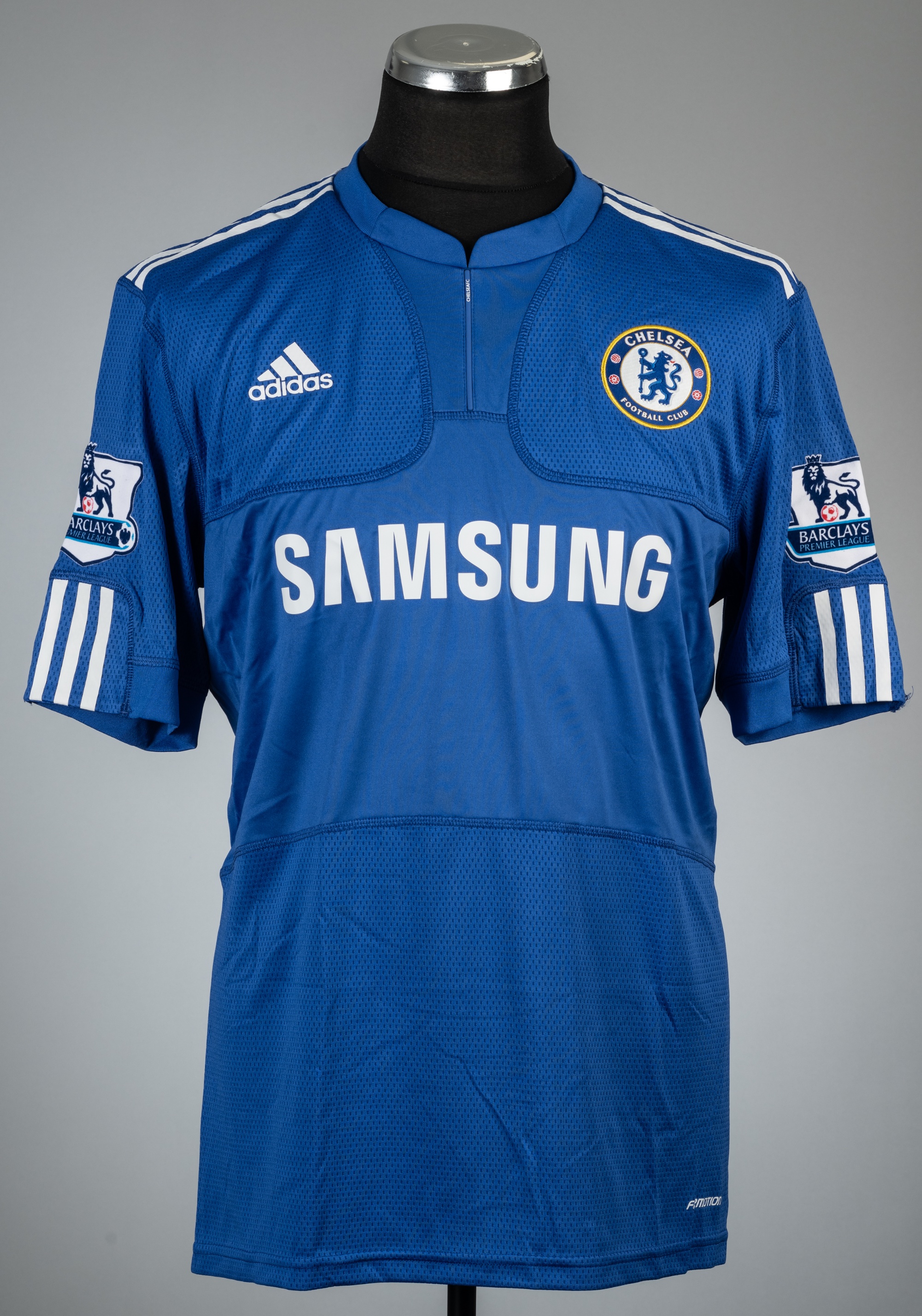 Nicolas Anelka blue Chelsea no.39 home jersey, season 2009-10, Adidas, short-sleeved with BARCLAYS PREMIER LEAGUE sleeve badges, club crest and spons