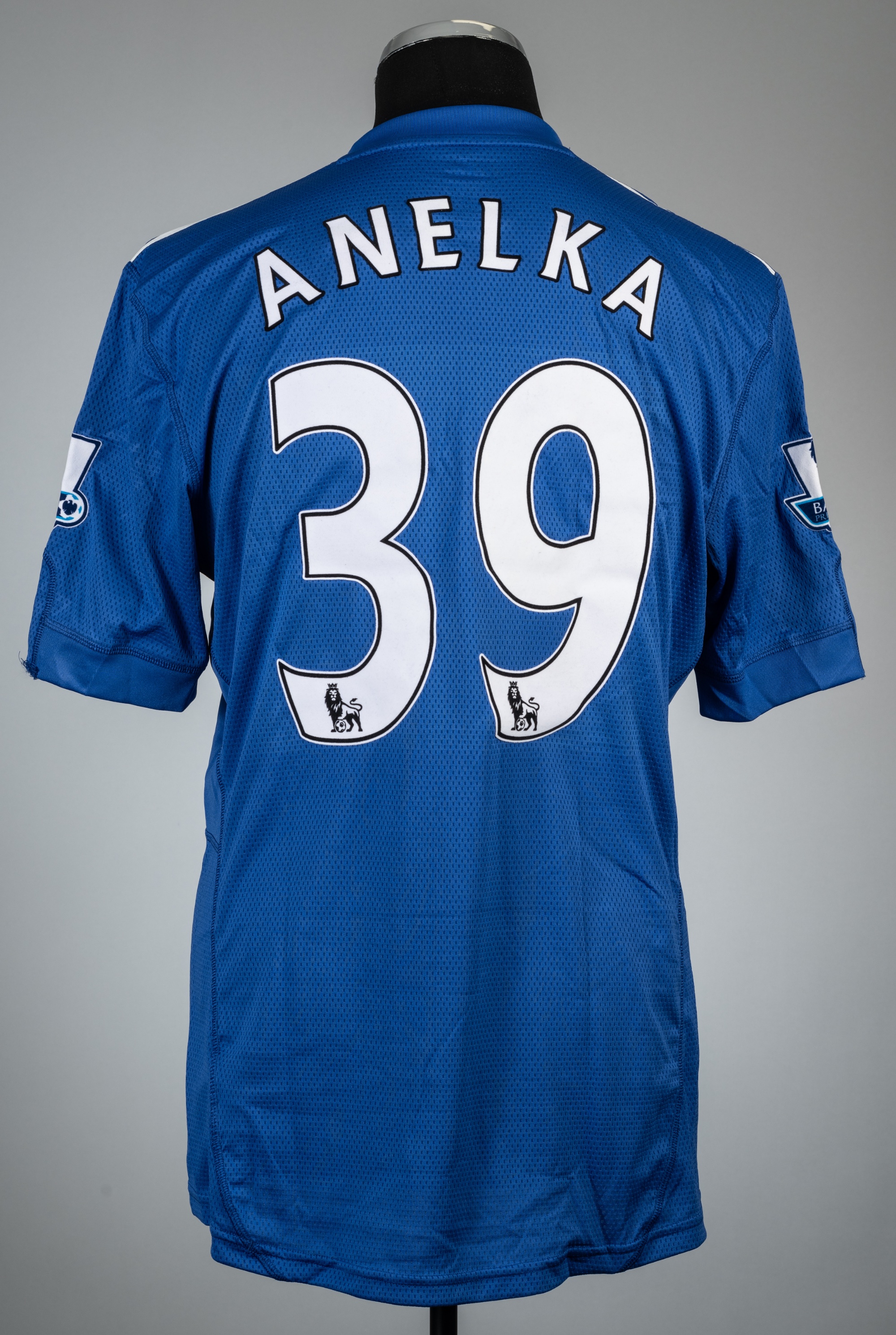 Nicolas Anelka blue Chelsea no.39 home jersey, season 2009-10, Adidas, short-sleeved with BARCLAYS PREMIER LEAGUE sleeve badges, club crest and sponsor logo, reverse lettered ANELKA, size L