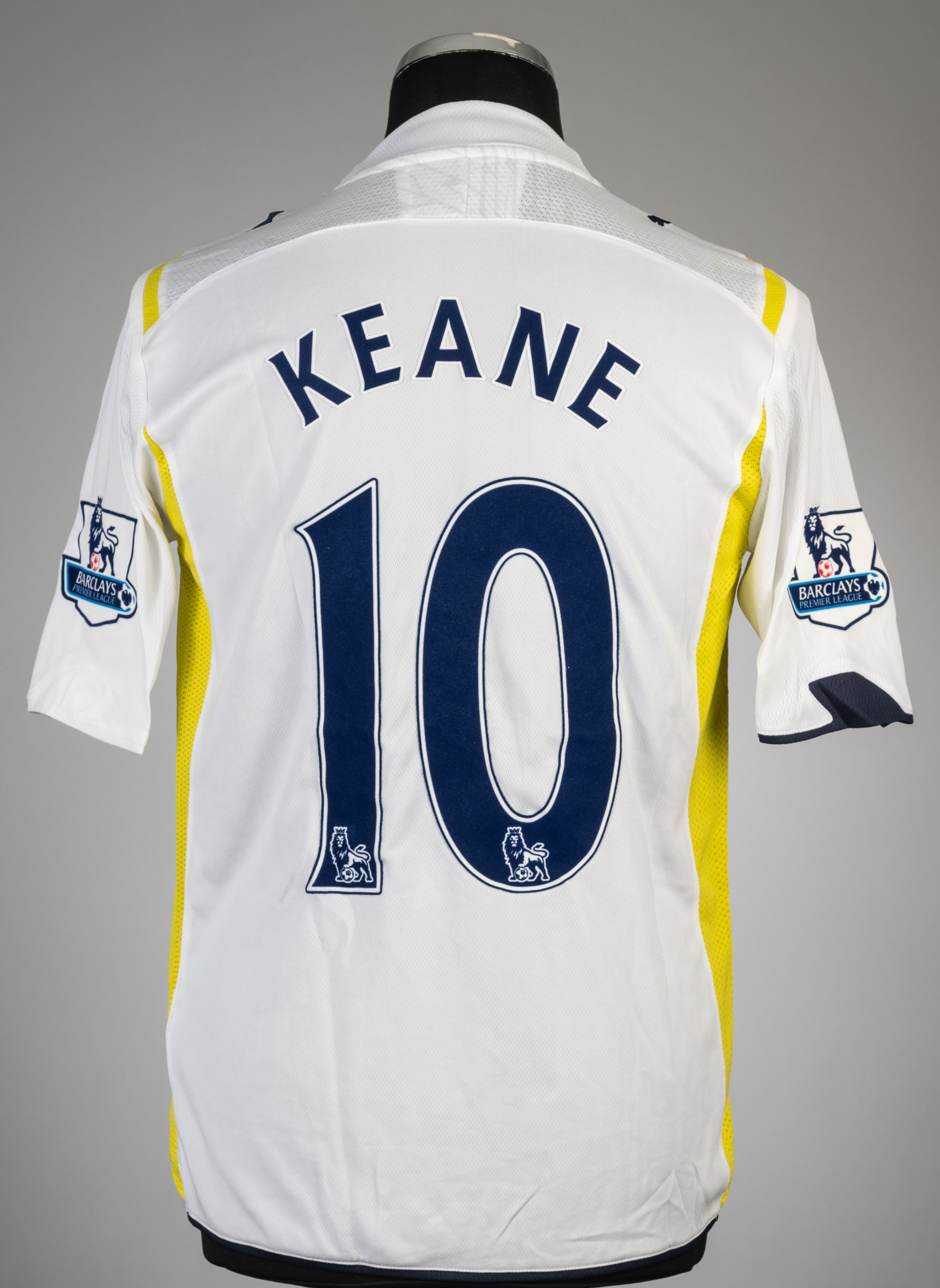 Robbie Keane white Tottenham Hotspur no.10 home jersey, season 2009-10, Puma, short-sleeved with BARCLAYS PREMIER LEAGUE sleeve badges, club crest an