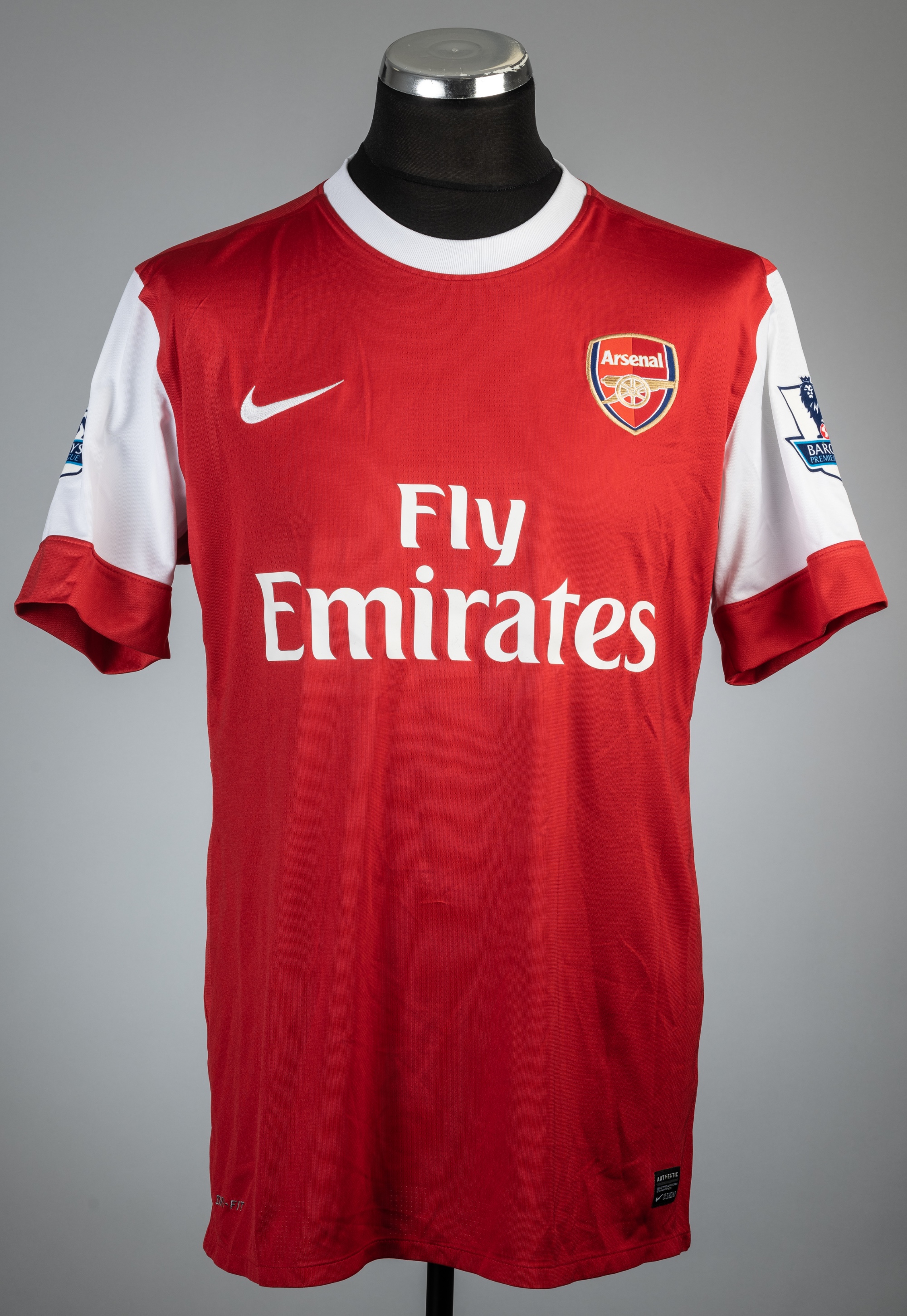 Cesc Fabregas red Arsenal no.4 home jersey, season 2010-11, Nike, short-sleeved with BARCLAYS PREMIER LEAGUE sleeve badges, club crest, sponsor logo,