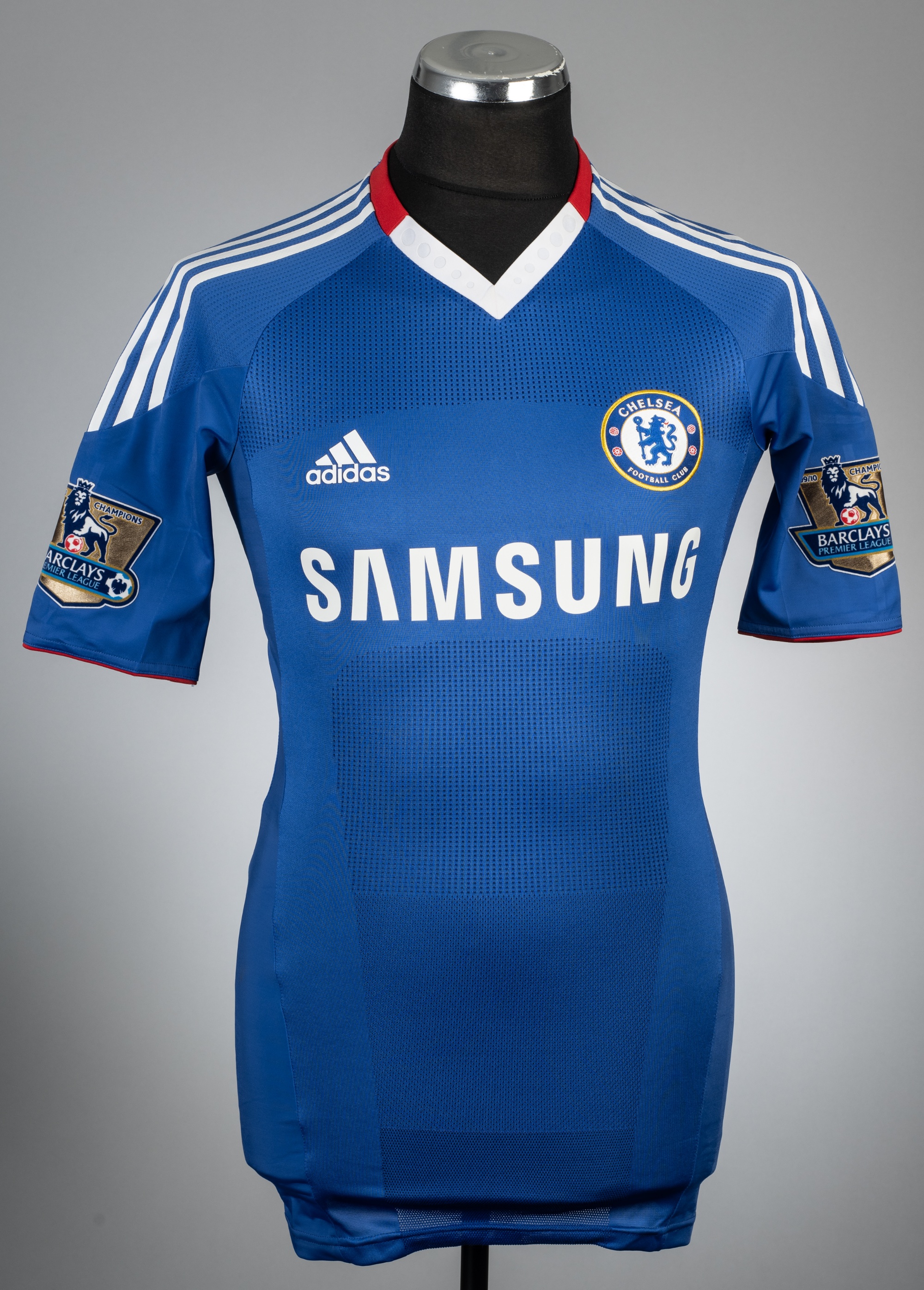 Ashley Cole blue Chelsea no.3 home jersey, season 2010-11, Adidas, player issued short-sleeved with BARCLAYS PREMIER LEAGUE 09/10 CHAMPIONS sleeve ba