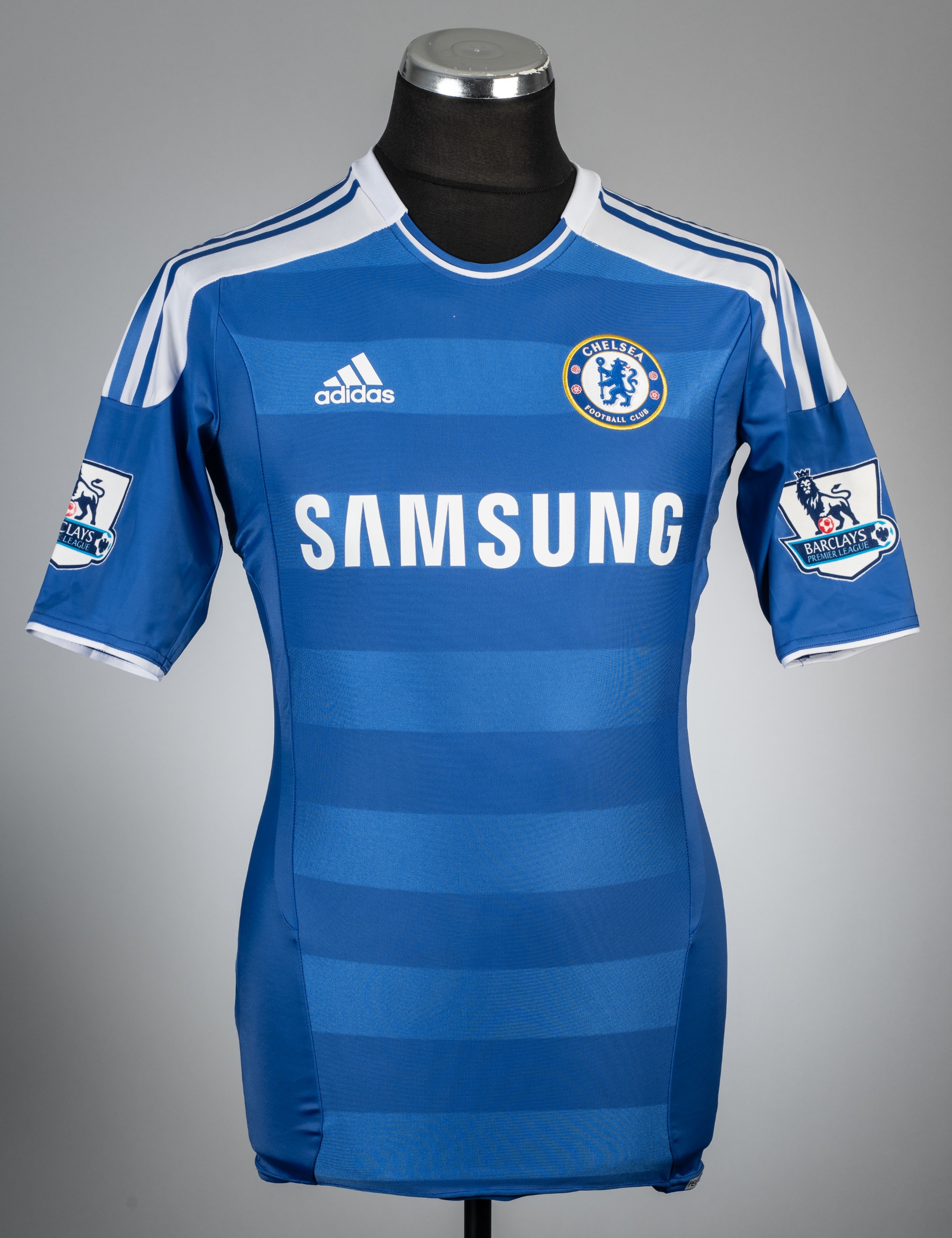 Juan Mata blue Chelsea no.10 home jersey, season 2011-12, Adidas, player issued short-sleeved with BARCLAYS PREMIER LEAGUE sleeve badges, club crest