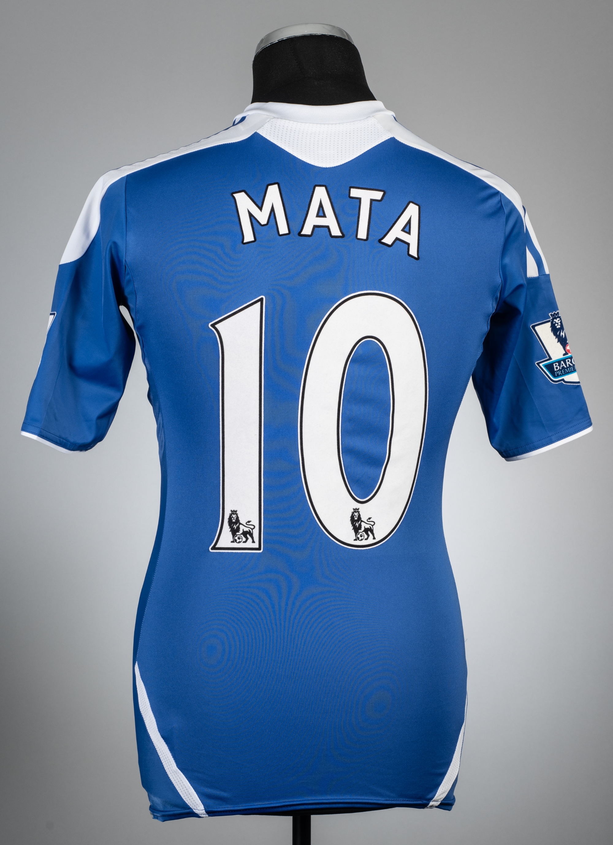 Juan Mata blue Chelsea no.10 home jersey, season 2011-12, Adidas, player issued short-sleeved with BARCLAYS PREMIER LEAGUE sleeve badges, club crest and sponsor logo, reverse lettered MATA, size 6 UK