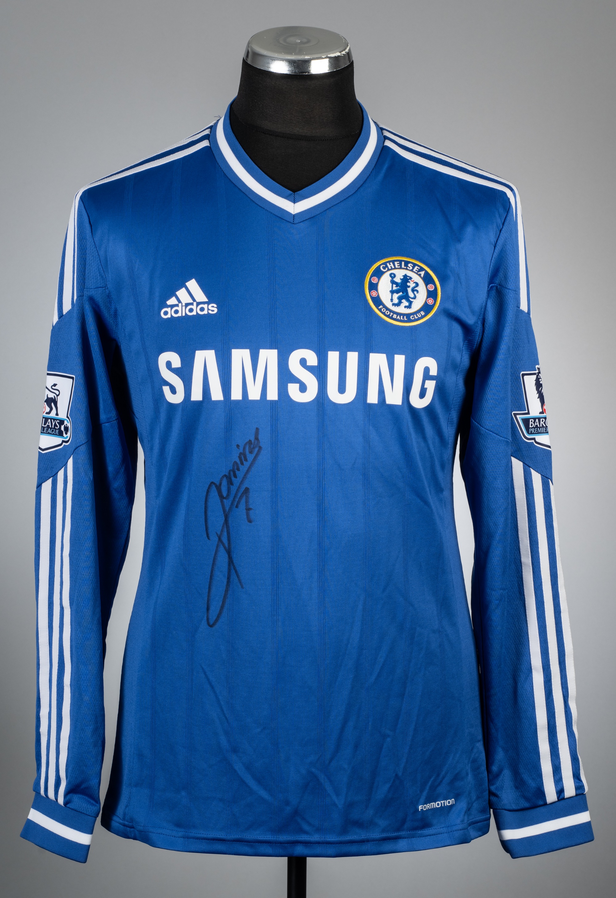 Ramires signed blue Chelsea no.7 home jersey, season 2013-14, Adidas, player issued long-sleeved with BARCLAYS PREMIER LEAGUE sleeve badges, club cre