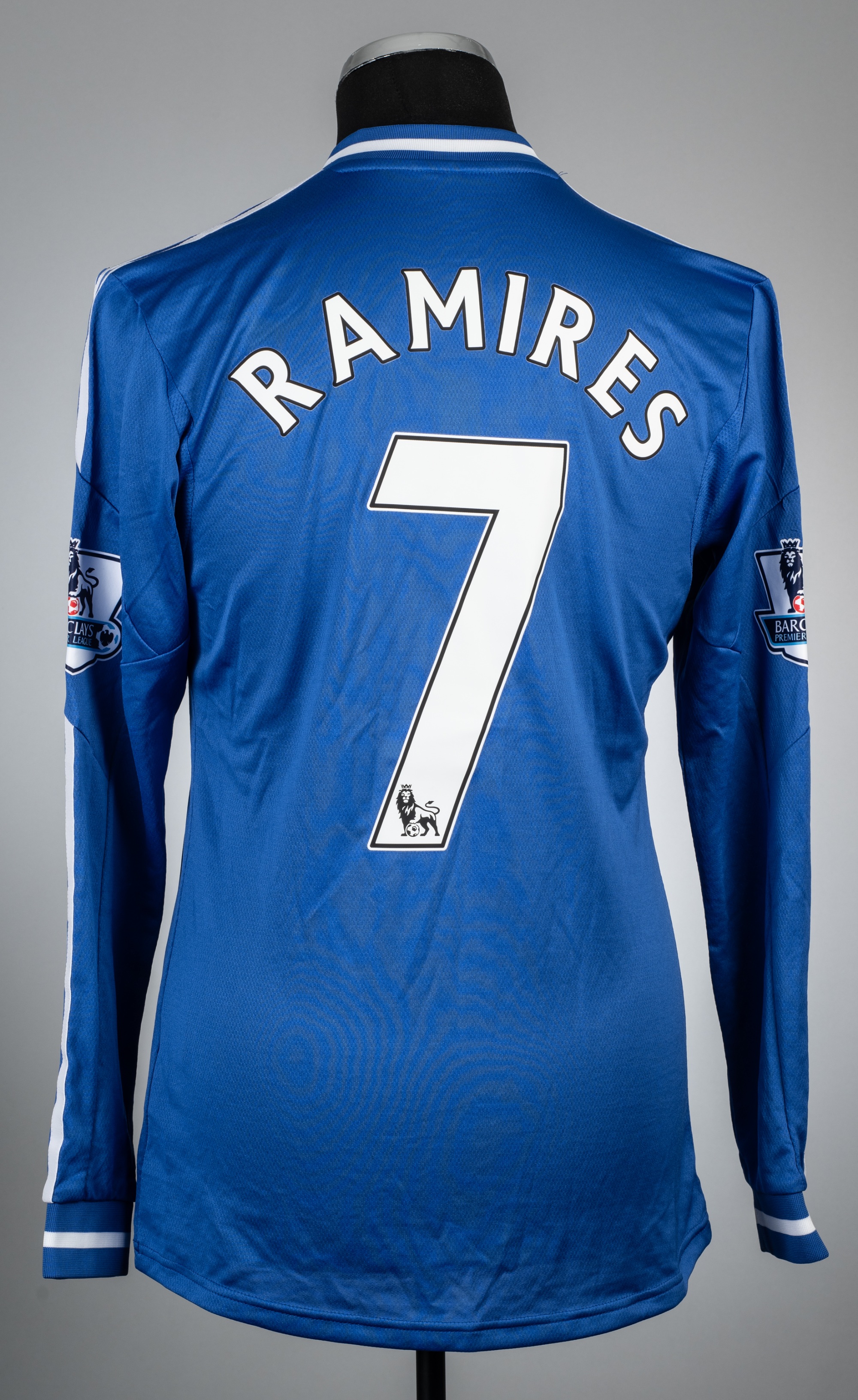 Ramires signed blue Chelsea no.7 home jersey, season 2013-14, Adidas, player issued long-sleeved with BARCLAYS PREMIER LEAGUE sleeve badges, club crest and sponsor logo, reverse lettered RAMIRES, signed in black marker pen to front, size 7 UK