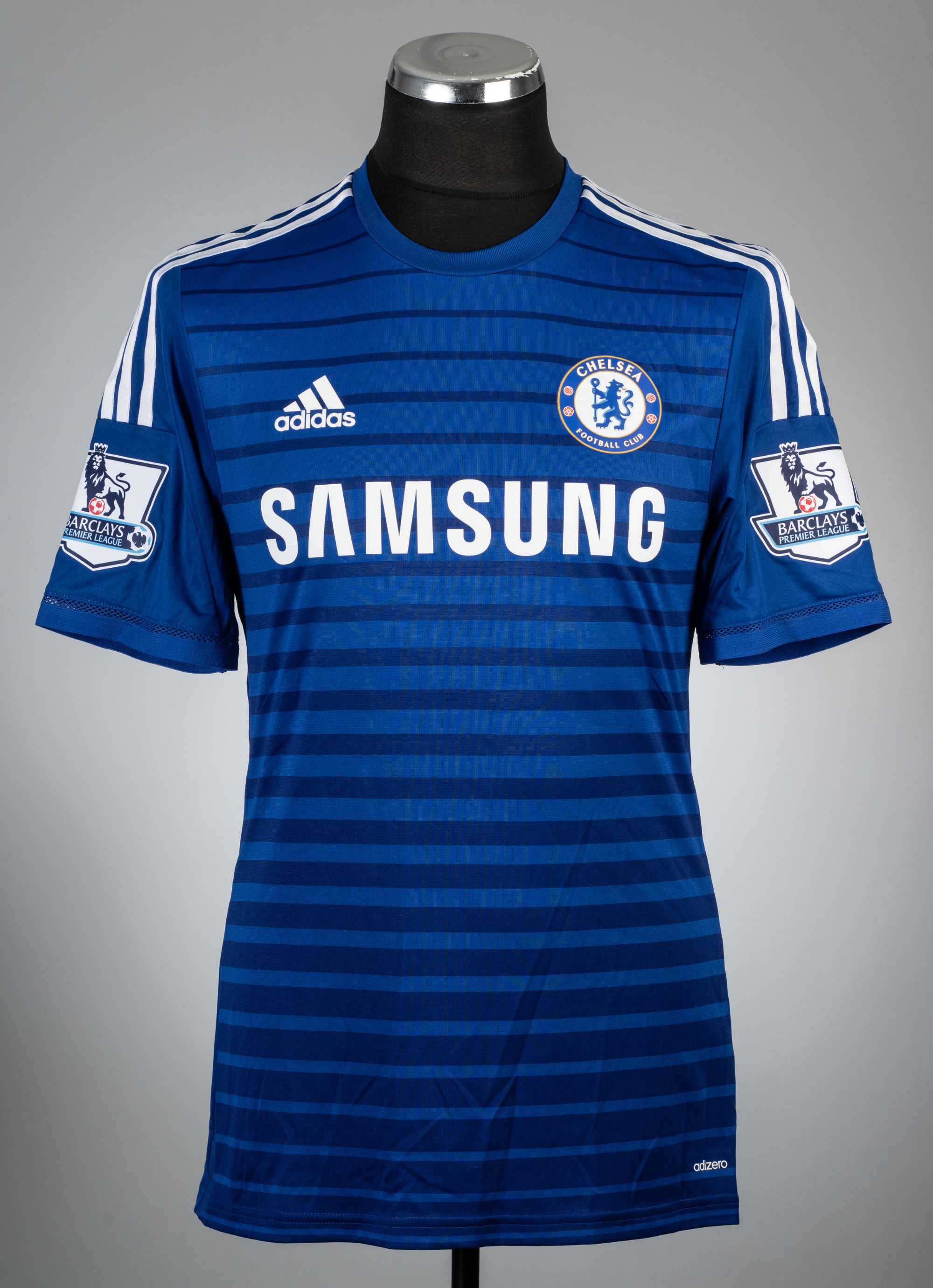 Cesc Fabregas blue Chelsea no.4 home jersey, season 2014-15, Adidas, player issued short-sleeved with BARCLAYS PREMIER LEAGUE sleeve badges, club crest and sponsor logo, reverse lettered FABREGAS, size 6 UK