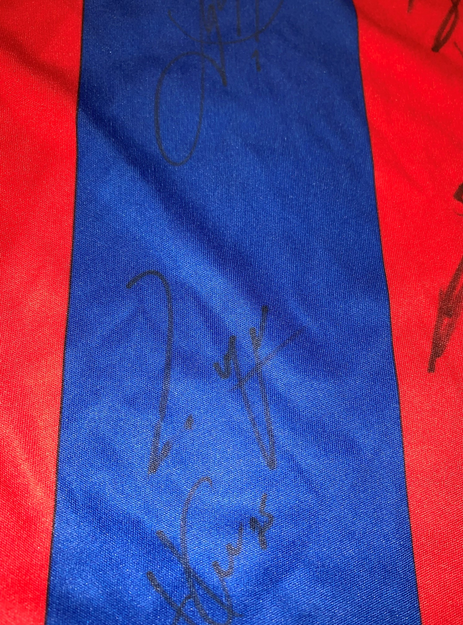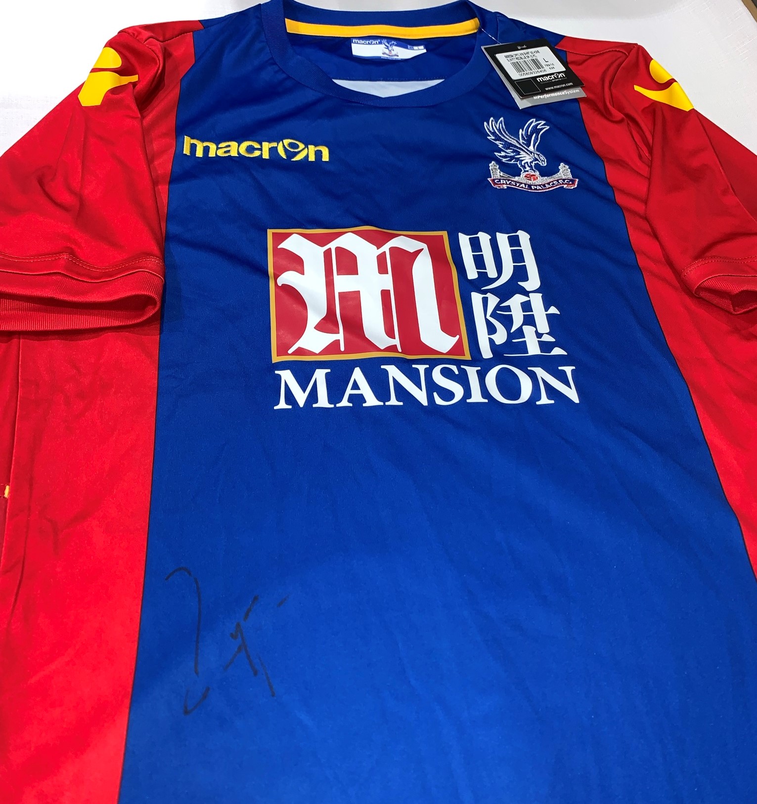 Crystal Palace signed replica football jerseys, individual 2016-17 jersey signed by star player Wilfred Zaha and a 2017-18 team signed jersey, with C
