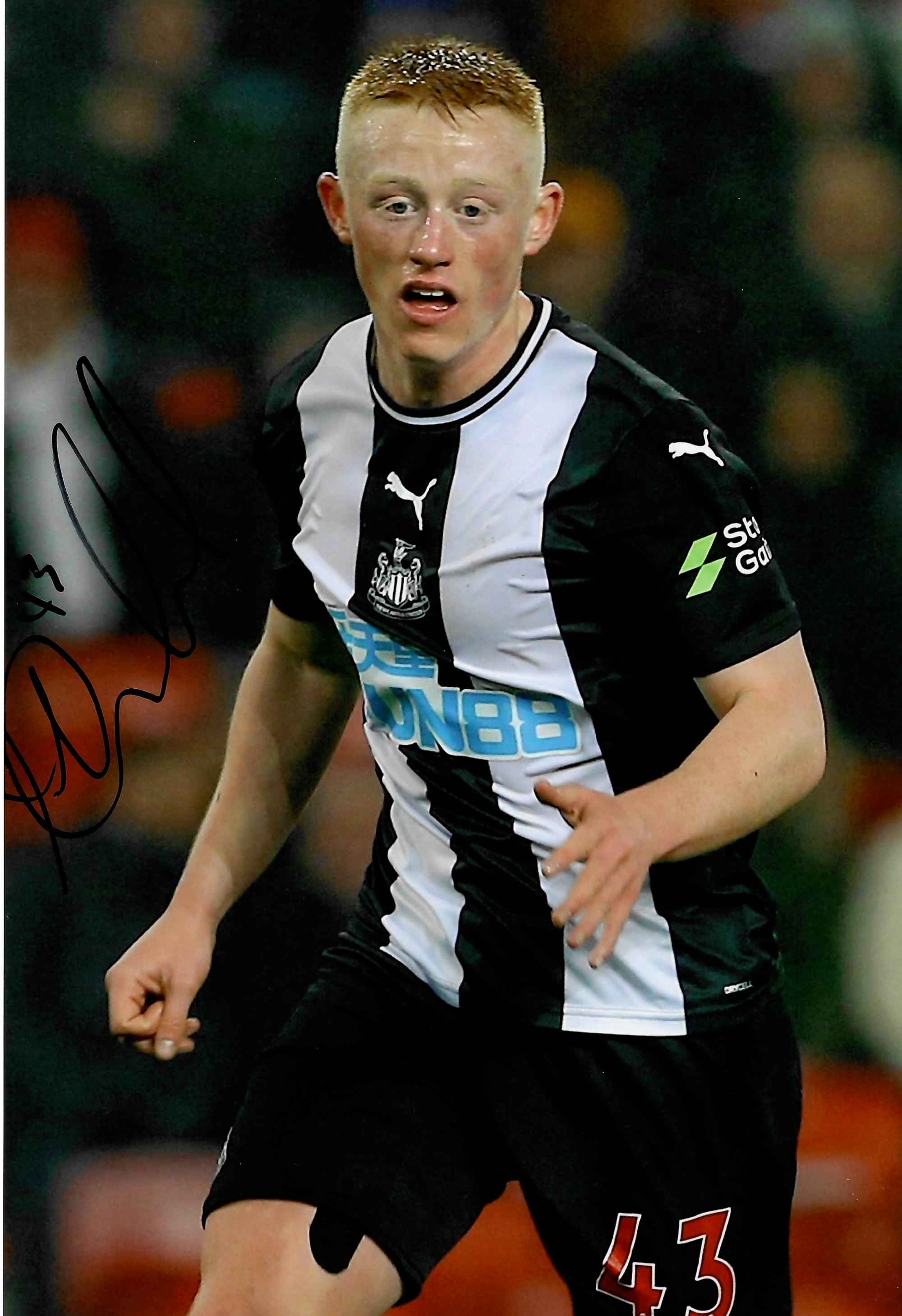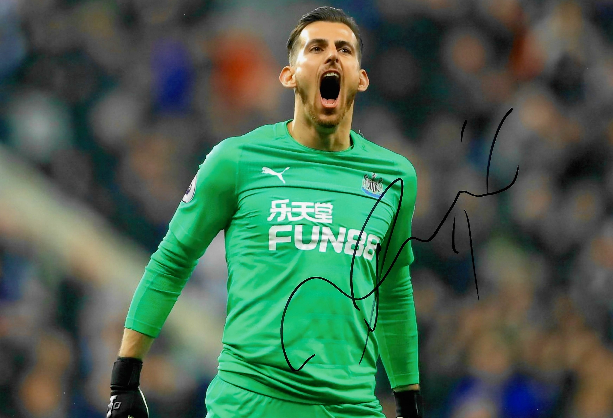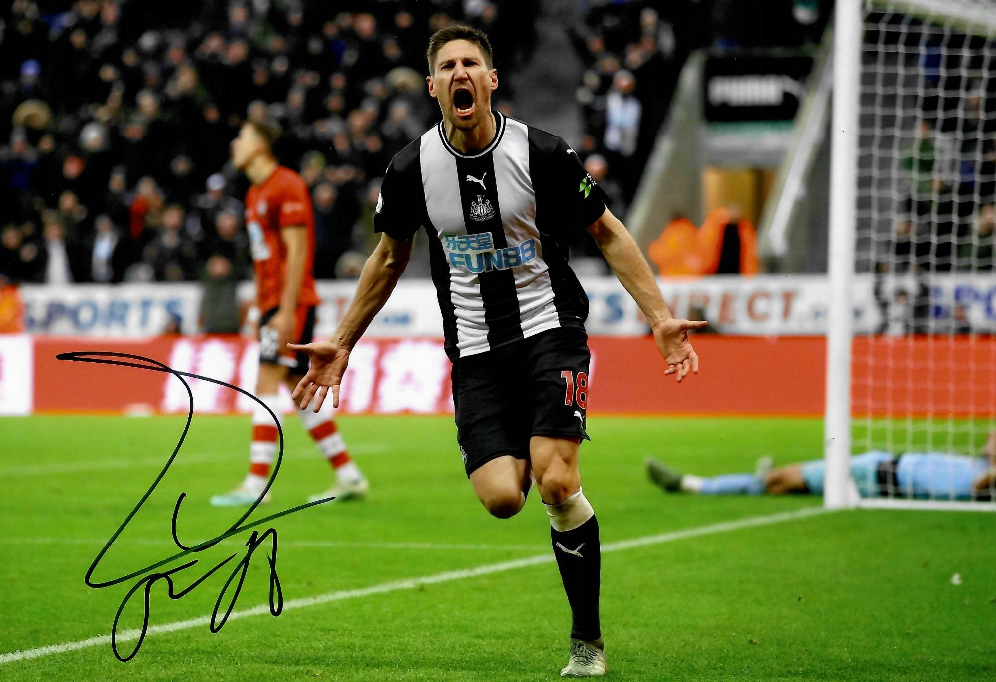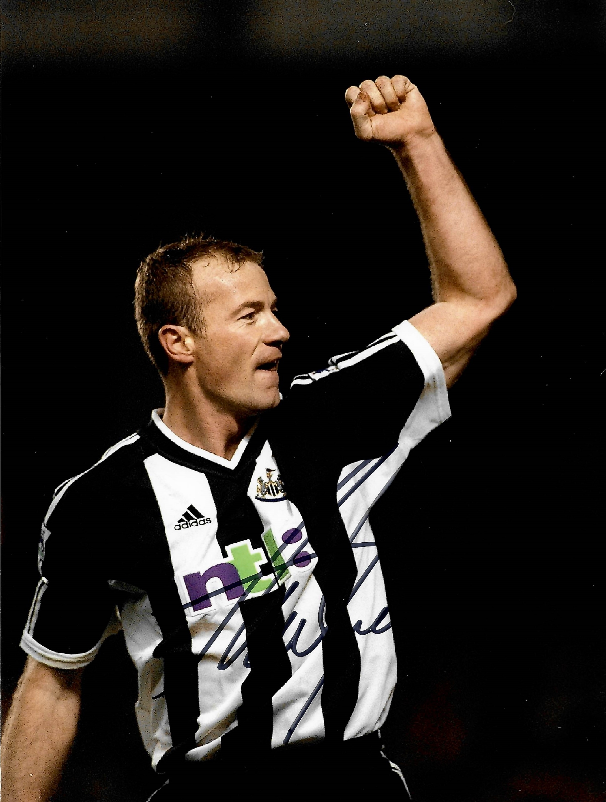 Newcastle United FC Collection of signed photographs by current and former players, including Alan Shearer CBE, Peter Beardsley MBE, both 8 by 10in., Moussa Sissoko, Papiss Cissé, Florian Lejeune, Federico Fernández, Matty Longstaff, Martin Dúbravka, all 8 by 12in., with COA and photo proof of signing, (8).
