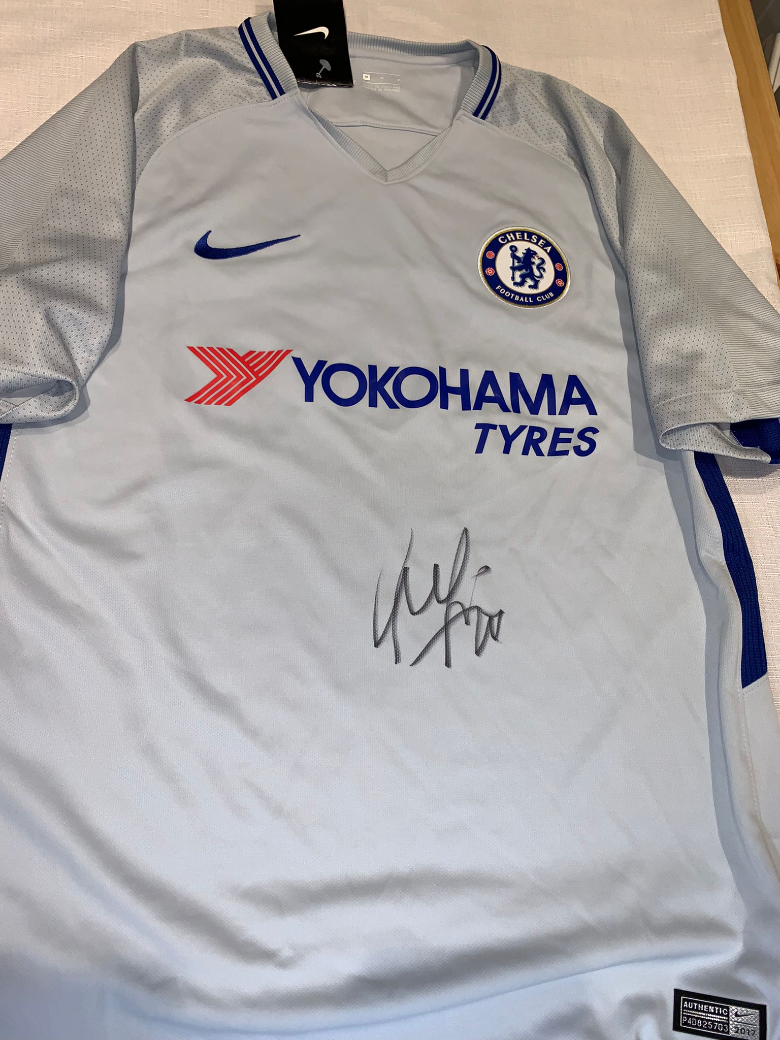 Ruben Loftus-Cheek signed grey Chelsea replica away jersey 2017-18, Nike, short-sleeved with club crest and sponsor logo, signed in marker pen to front, with retail tag and COA and photo proof
