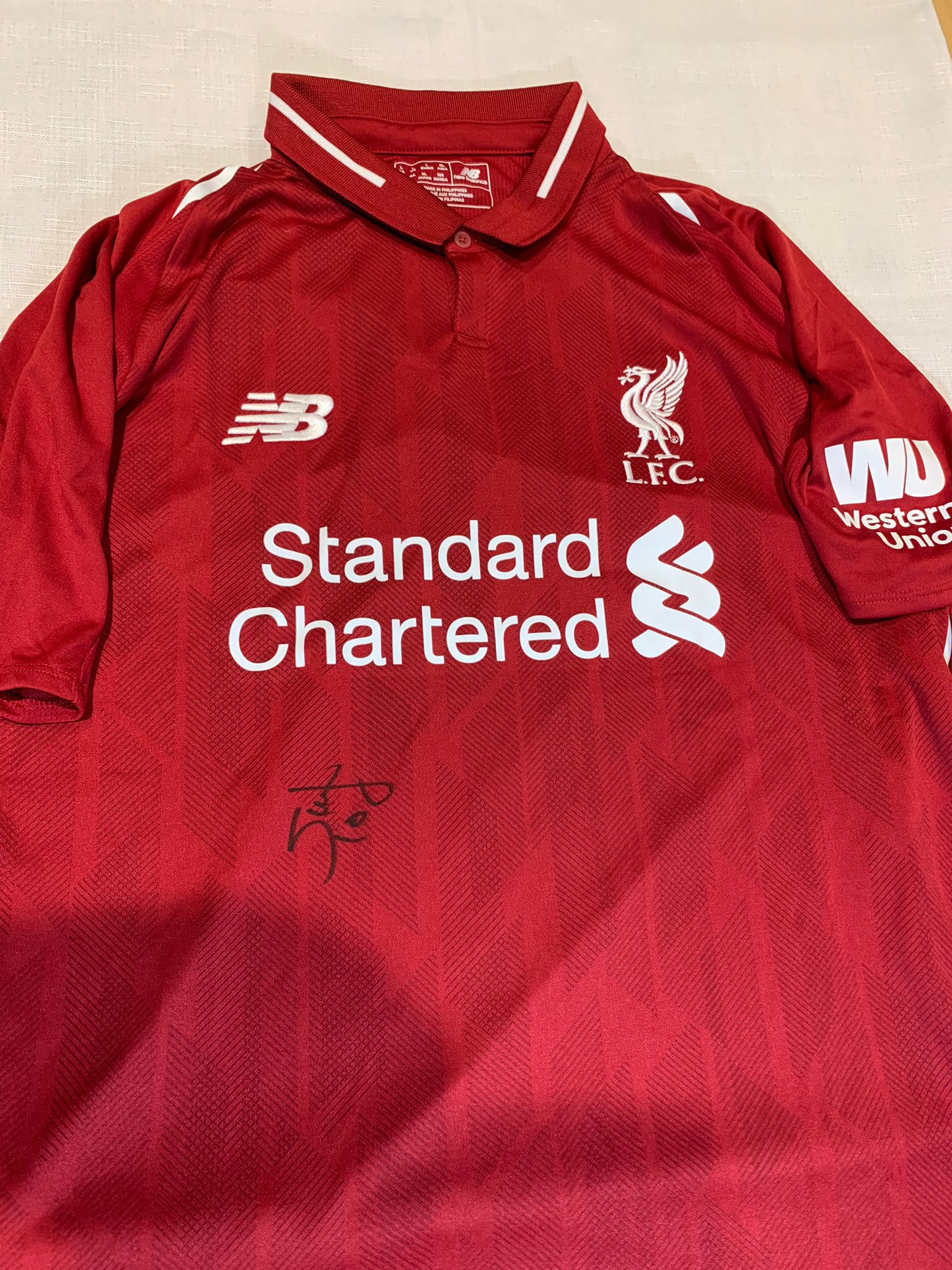 Sadio Mane signed red Liverpool replica home jersey 2018-19, New Balance, short-sleeved with club crest and sponsor logo, signed in marker pen on fro
