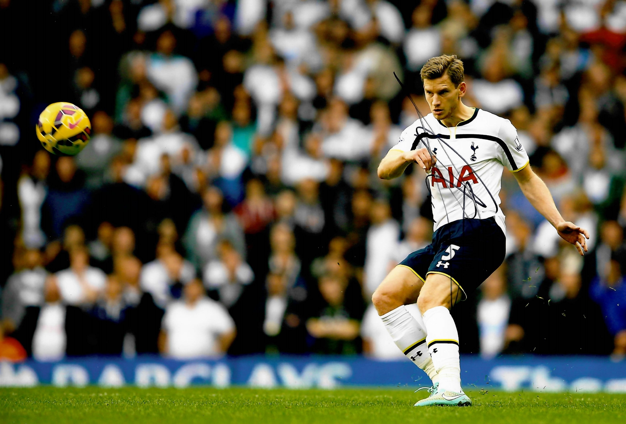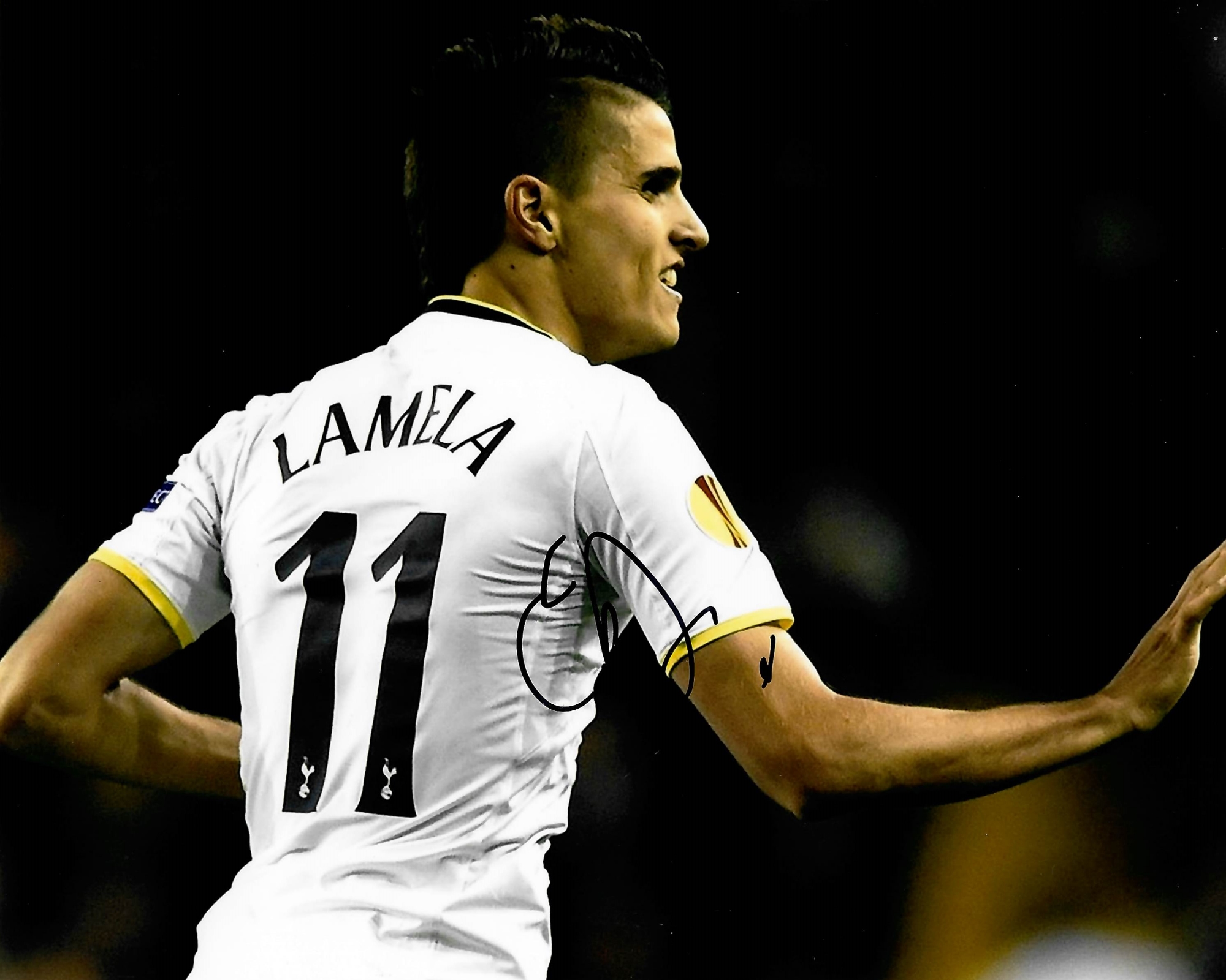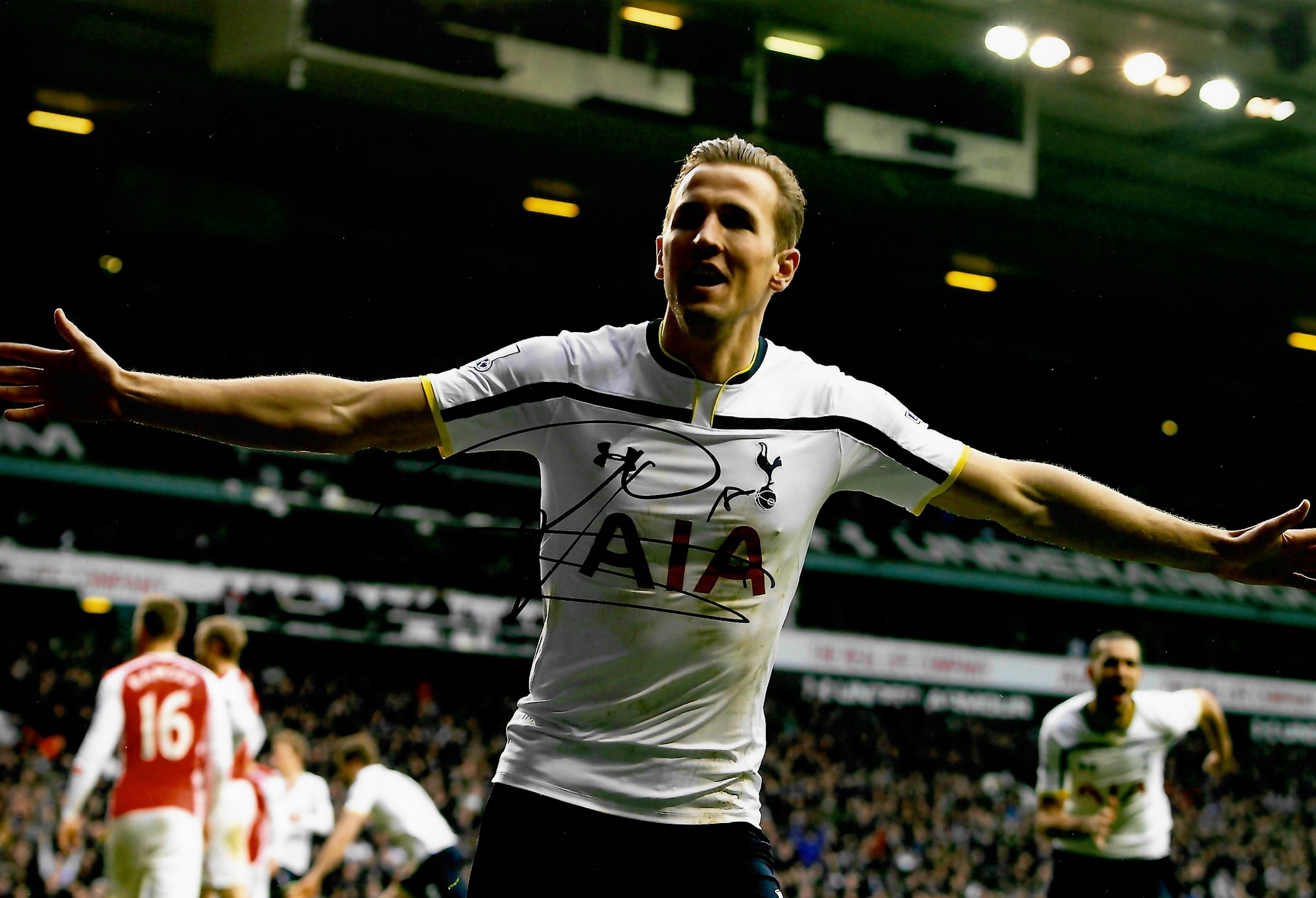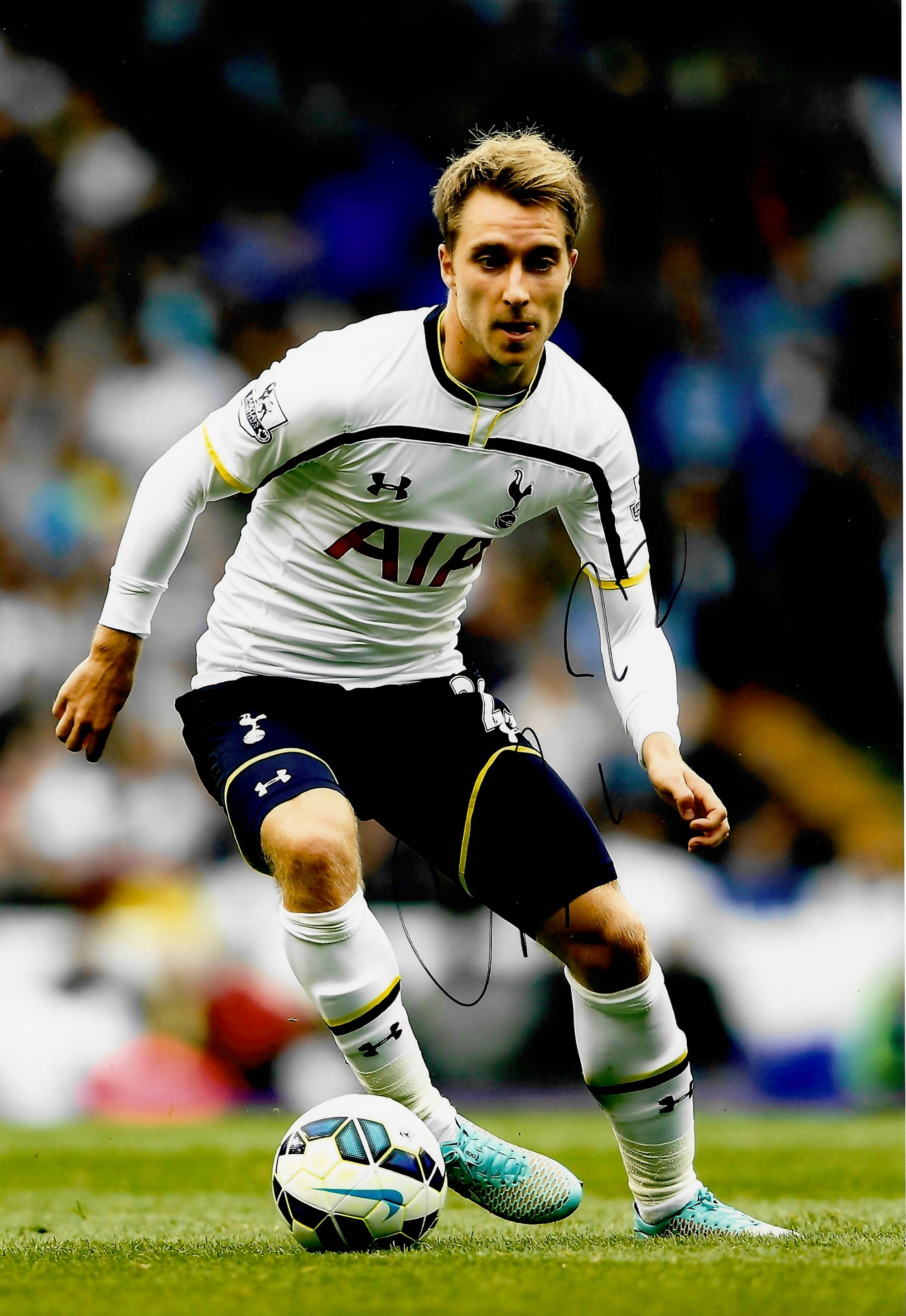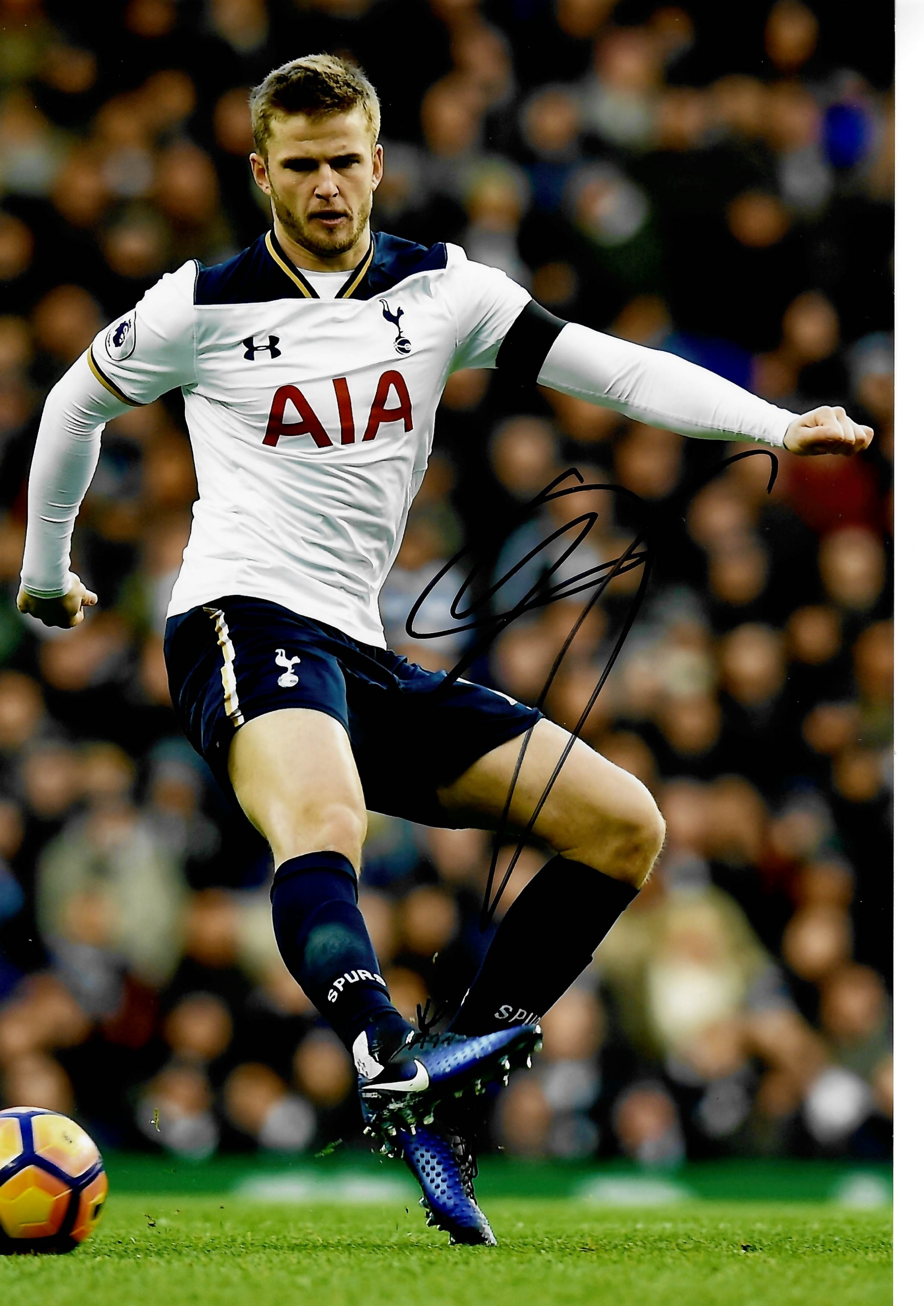Tottenham Hotspur Collection of signed photographs, including past and present players Harry Kane, Hugo Lloris, Christian Eriksen, Eric Dier, Jan Vertonghen, Moussa S Dembélé, all 8 by 12in. and Erik Lamela and Ryan Mason, both 8 by 10in., plus COA / photograph proof of players signing, (8)