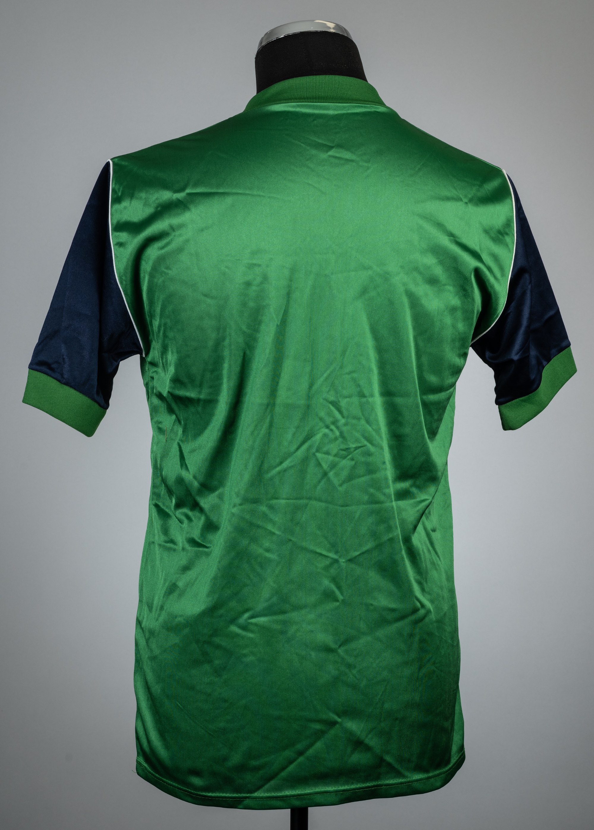 Green and navy Arsenal replica away jersey, season 1982-83, Umbro, short-sleeved with club crest and Umbro logo in felt, un-numbered, neck label remo