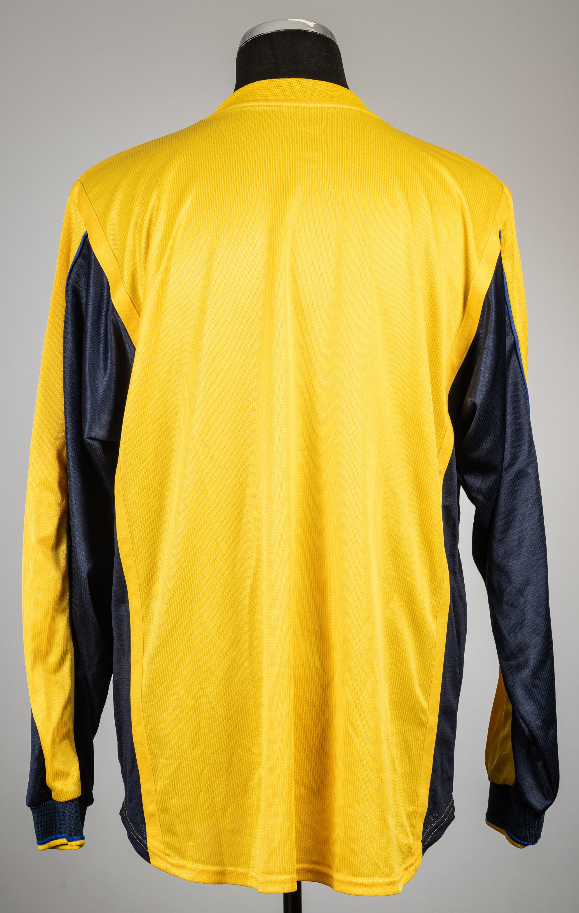 Yellow and navy Arsenal UEFA Cup final un-numbered jersey v Galatasaray, played at Parken Stadium, Copenhagen, 17th May 2000, Nike, long-sleeved with