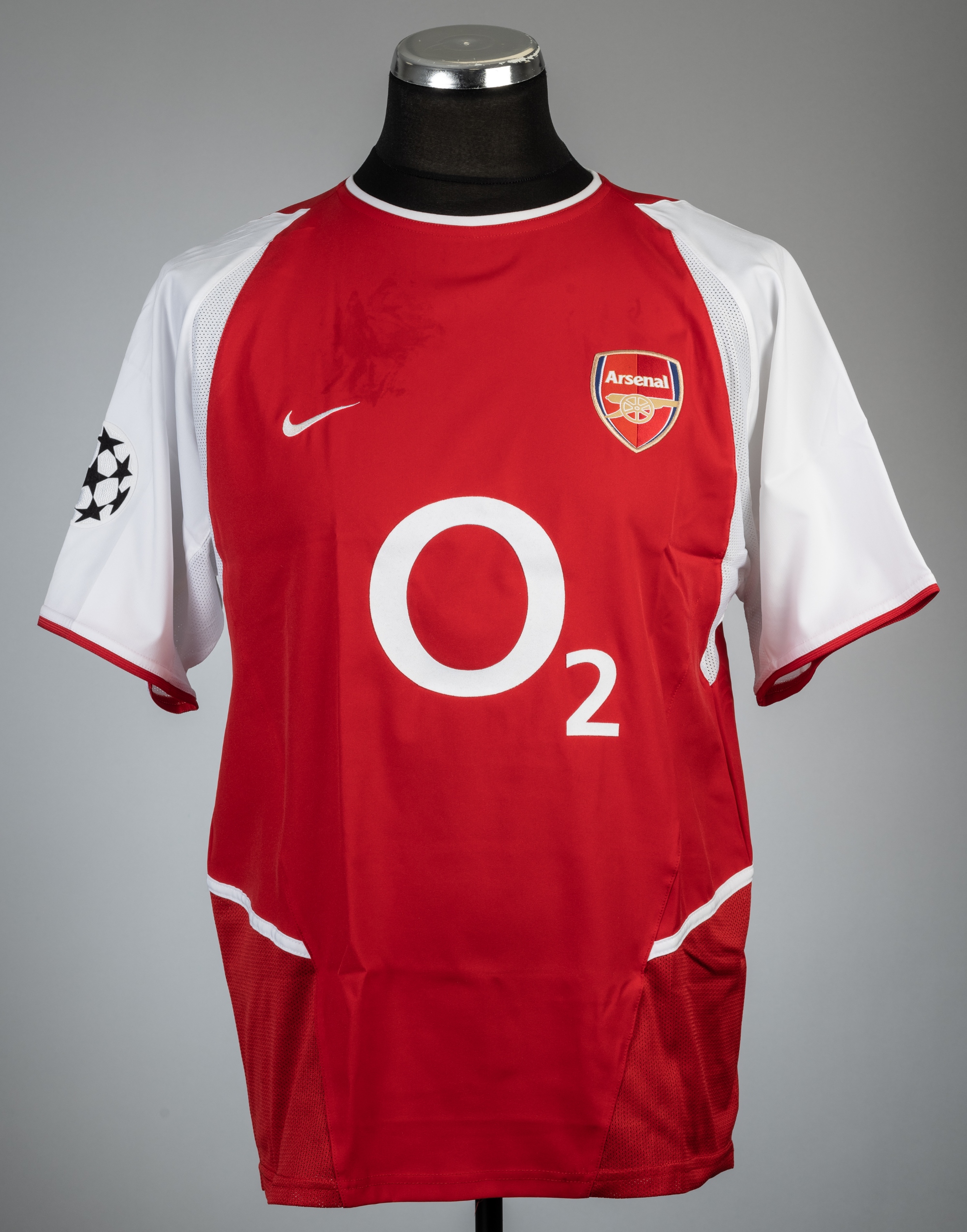 Ashley Cole red Arsenal no.3 home jersey, season 2003-04, Nike, short-sleeved with UEFA STARBALL sleeve badge, club crest and sponsor logo, reverse l