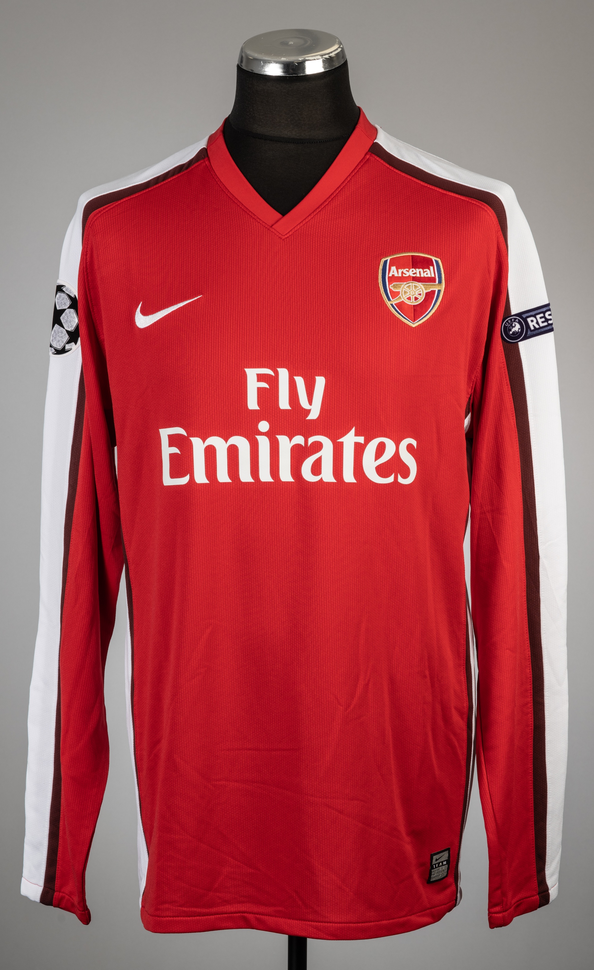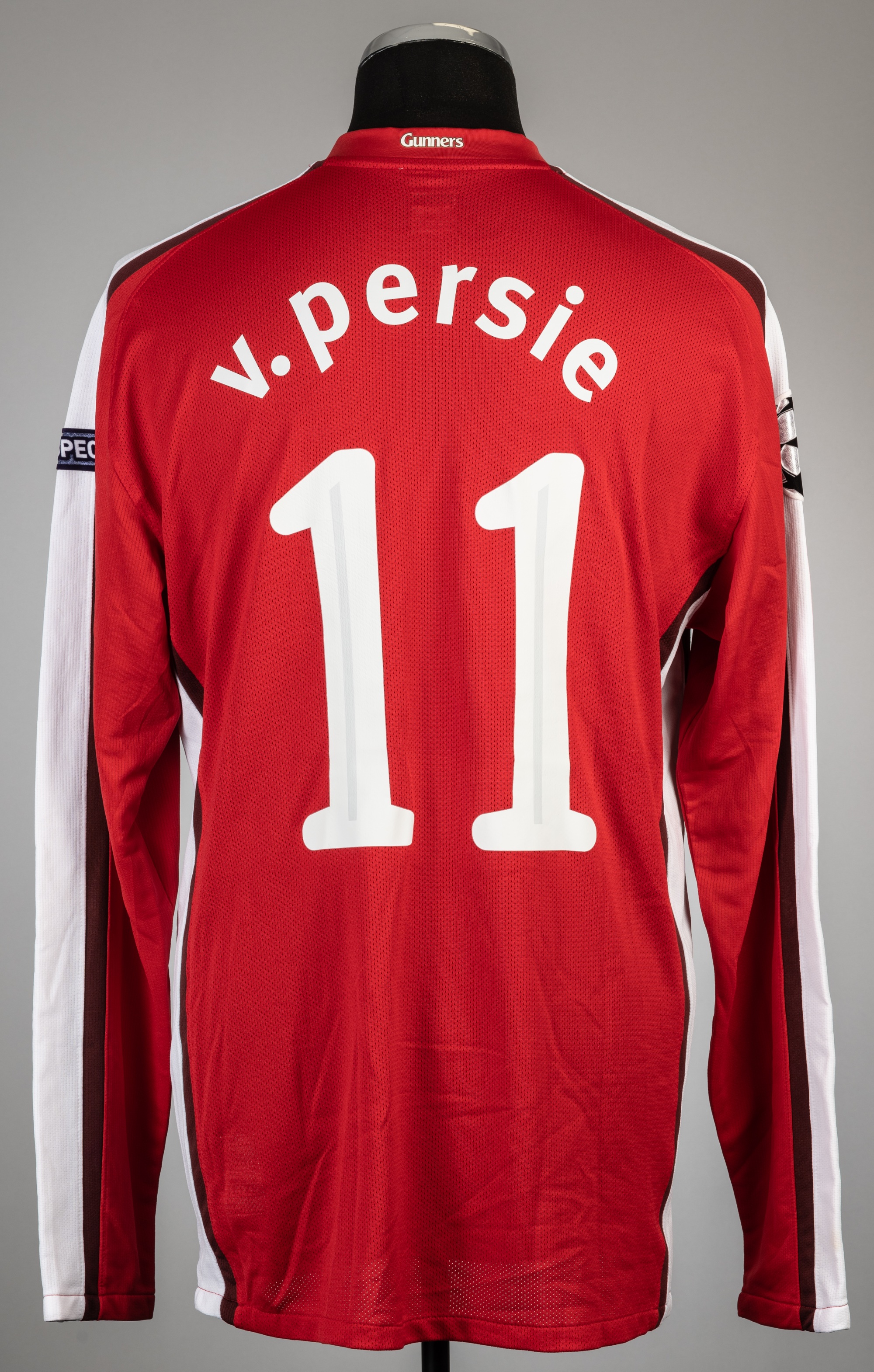 Robin van Persie red Arsenal no.11 home jersey, season 2009-10, Nike, long-sleeved with UEFA STARBALL and RESPECT sleeve badges, club crest and sponsor logo, reverse lettered v.PERSIE, size XL