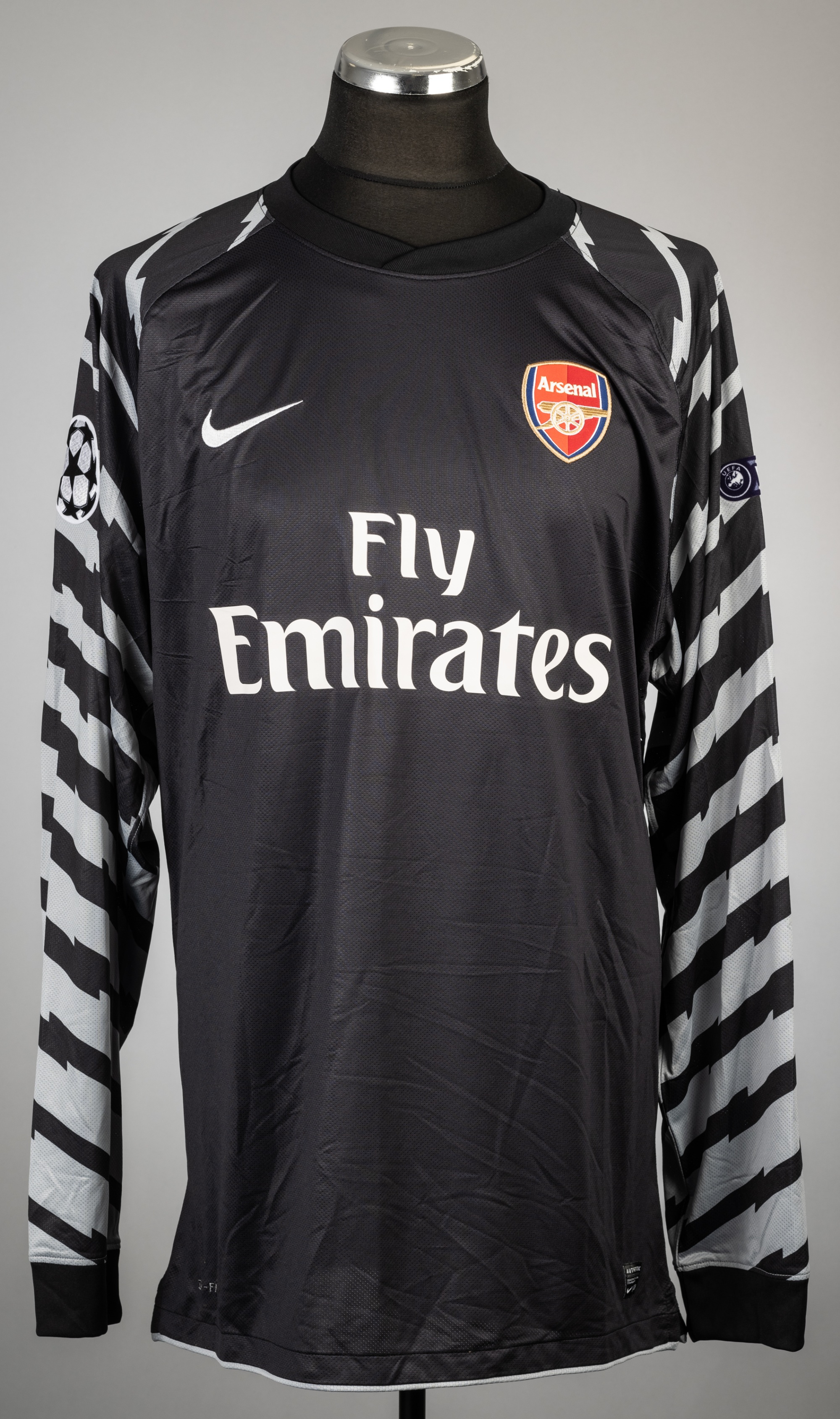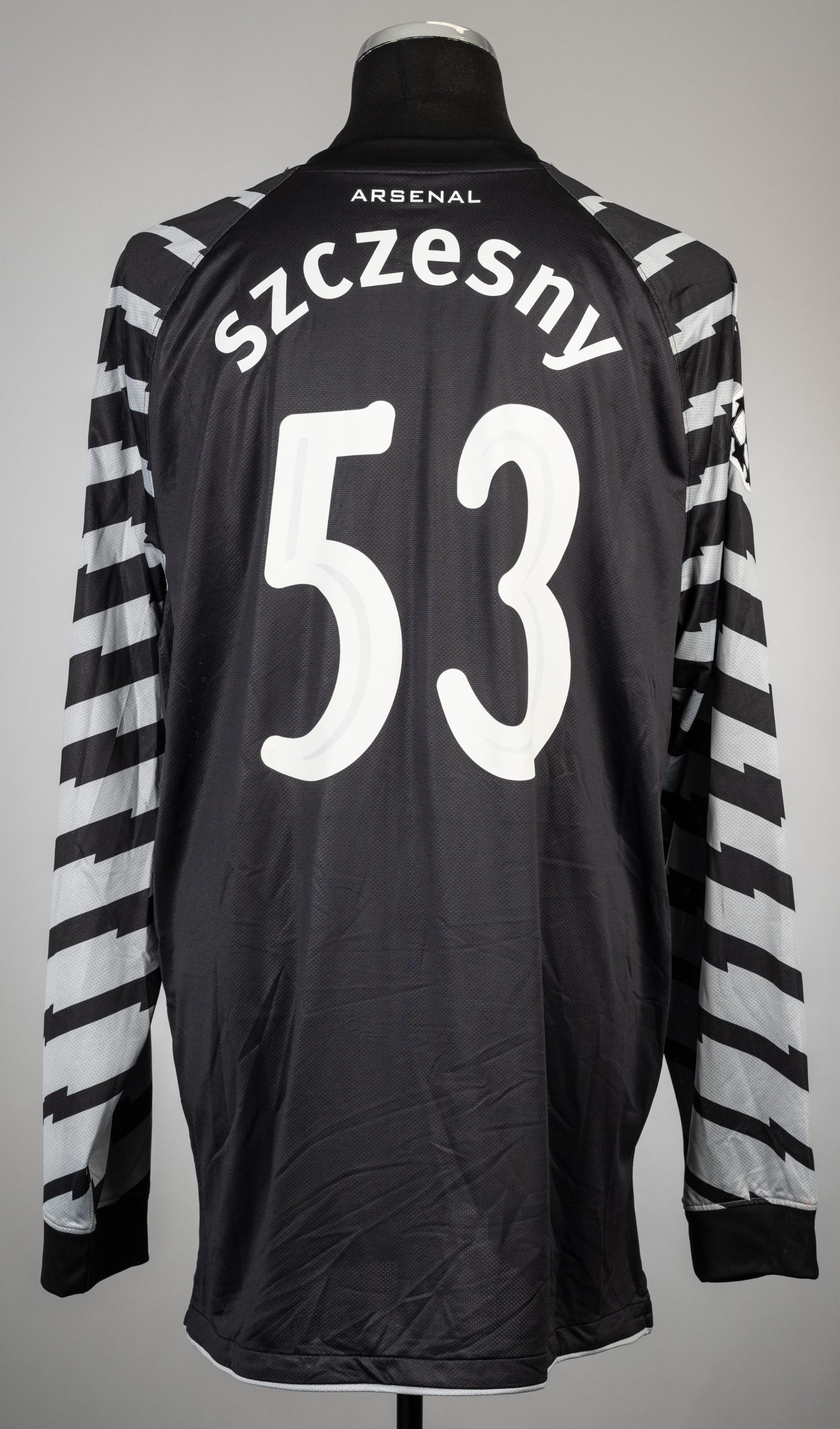 Wojciech Szczesny black Arsenal no.53 goalkeeper's third jersey, season 2010-11, Nike, long-sleeved with UEFA STARBALL and RESPECT sleeve badges, clu