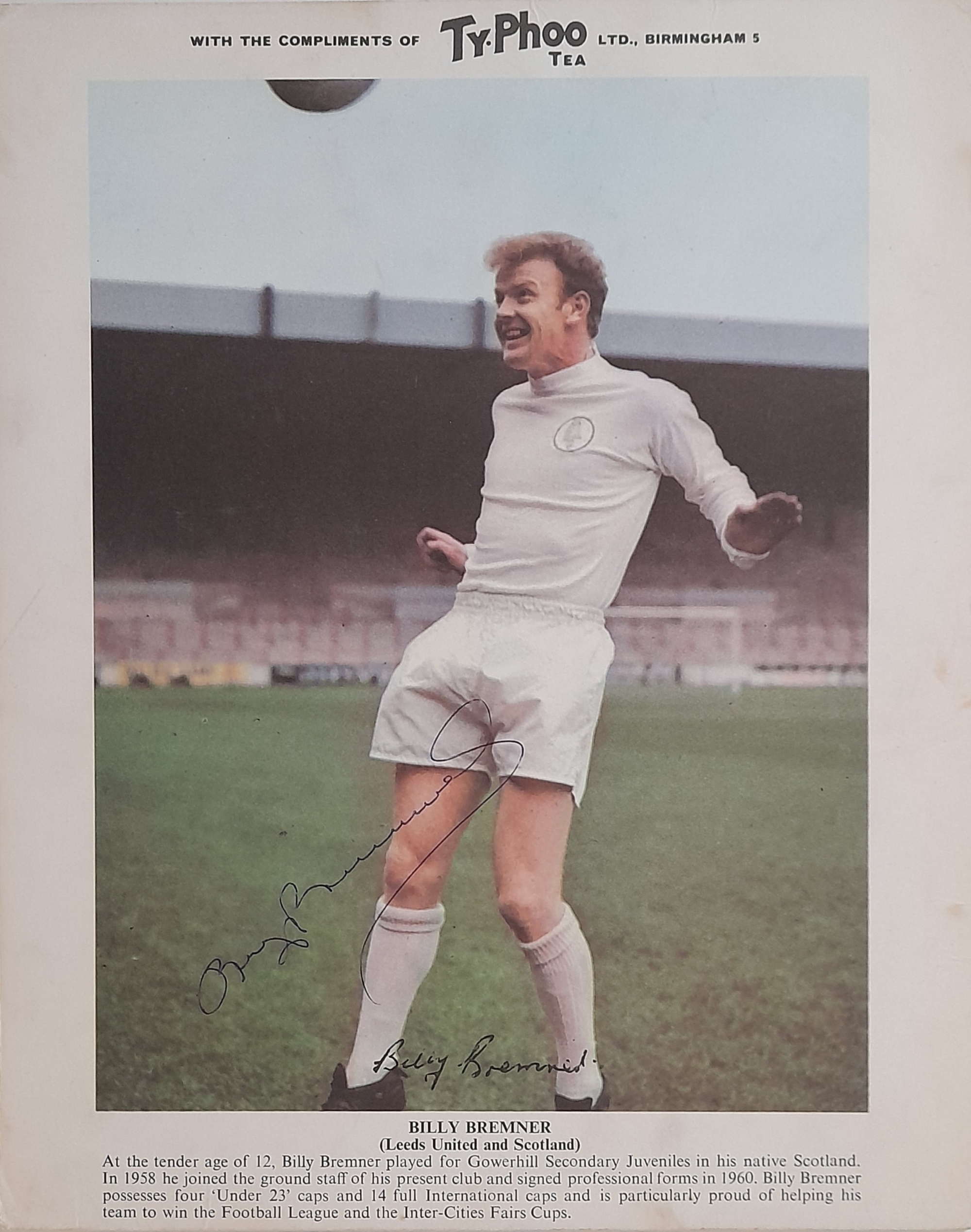 Billy Bremner Leeds United and Scotland signed Ty-phoo tea 2nd series photo card, lovely neat, bold rare autograph of this Leeds idol
