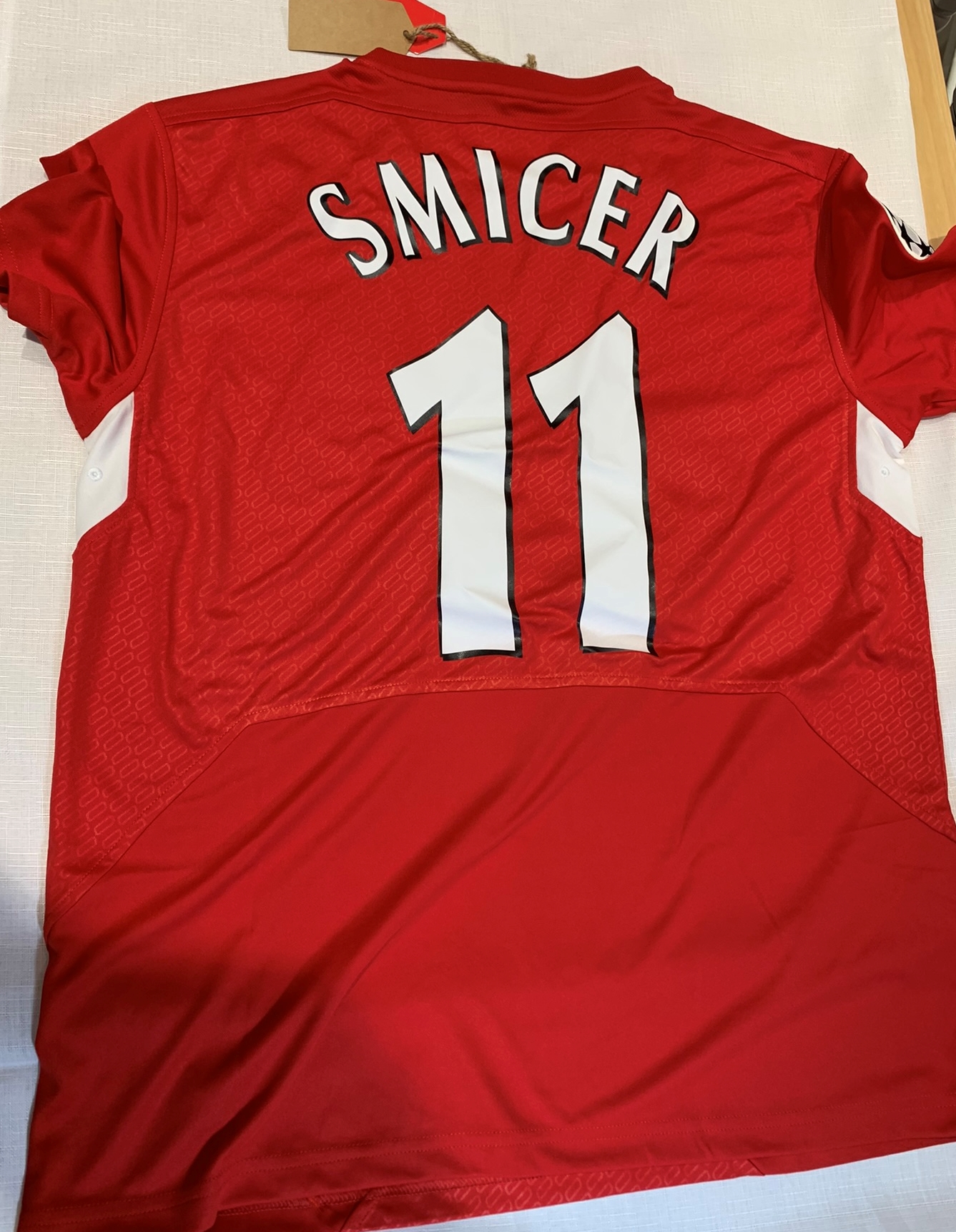 Vladamir Smicer signed red Liverpool replica 2005 Istanbul Champions League no.11 jersey, short-sleeved with club crest and sponsor logo, reverse lettered SMICER, signed on front in marker pen, reverse with retail tag and COA and photo proof