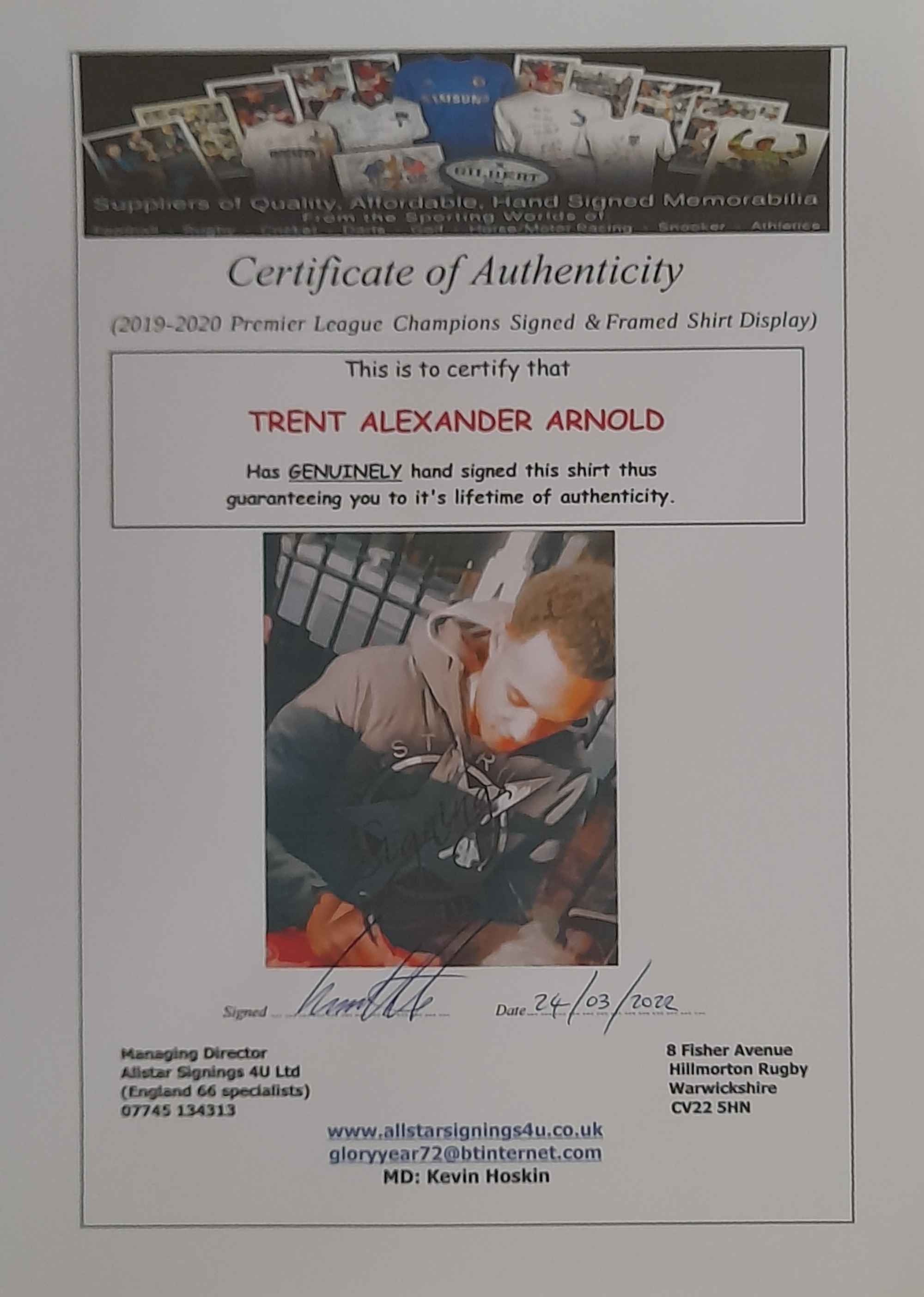 Trent Alexander Liverpool signed 2018-19 Liverpool jersey special edition with six Champions League winners embroidered around the crest, brand new with official Liverpool merchandise tags still attached, comes with COA and photo proof
