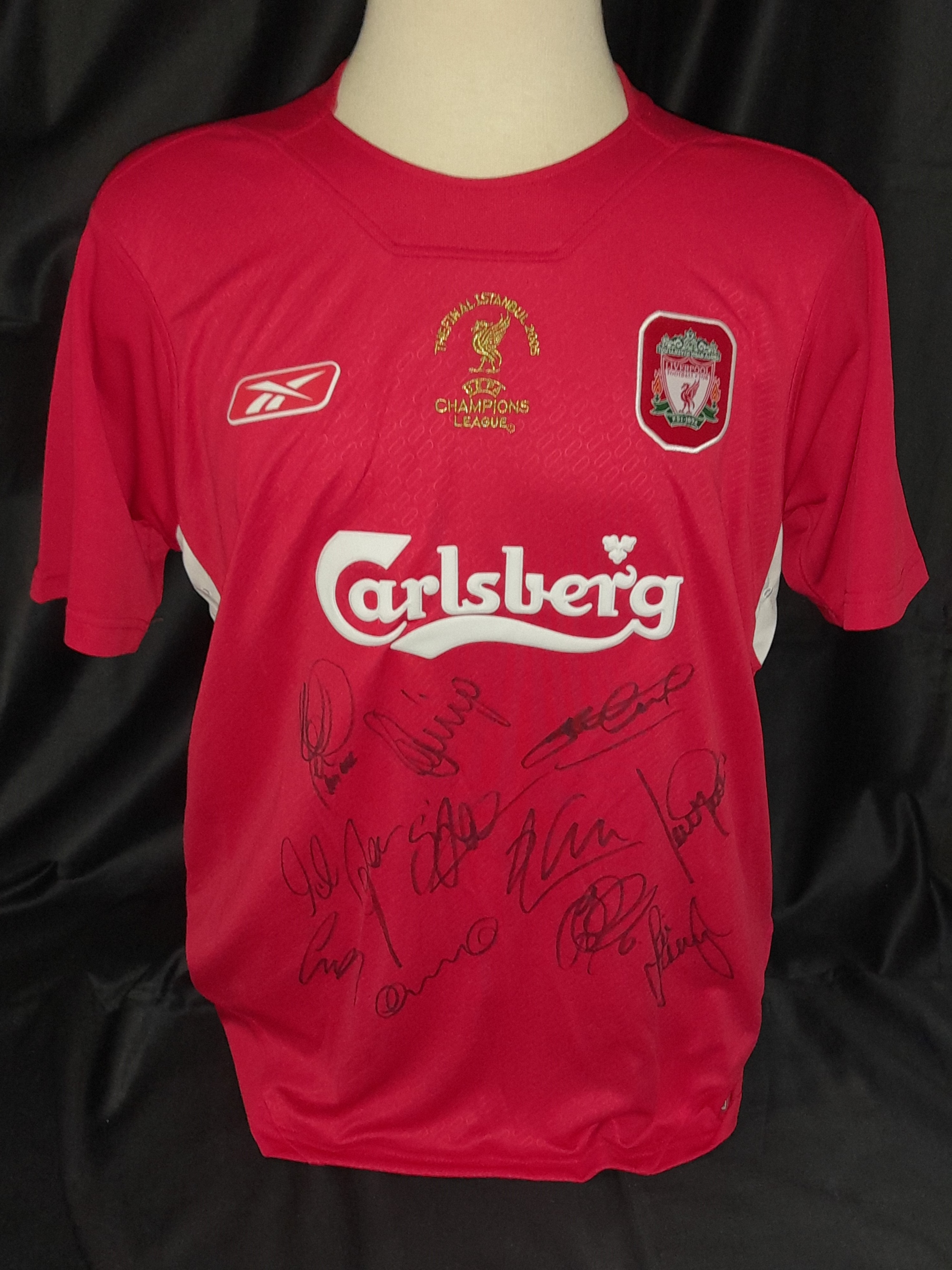 Liverpool 2005 Champions League Winners signed jersey v AC Milan, played on 25th May 2005 at the Ataturk Olympic Stadium in Istanbul, Turkey, Liverpo