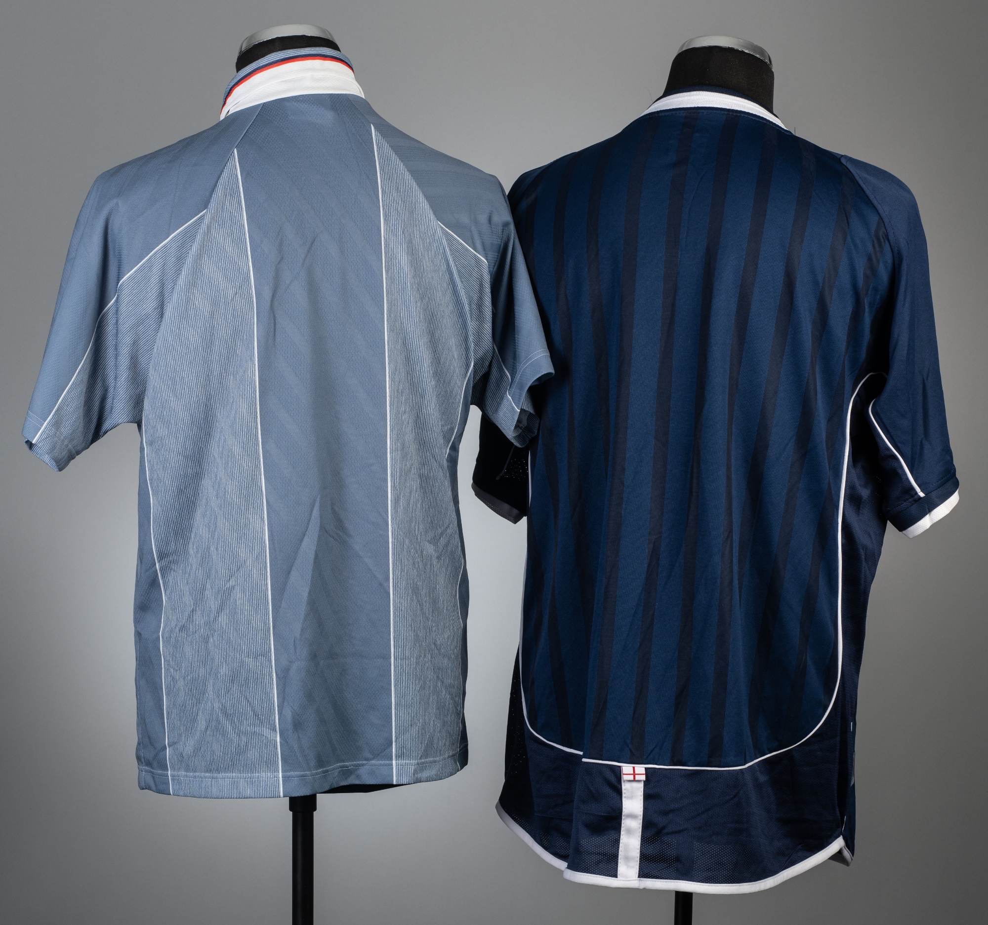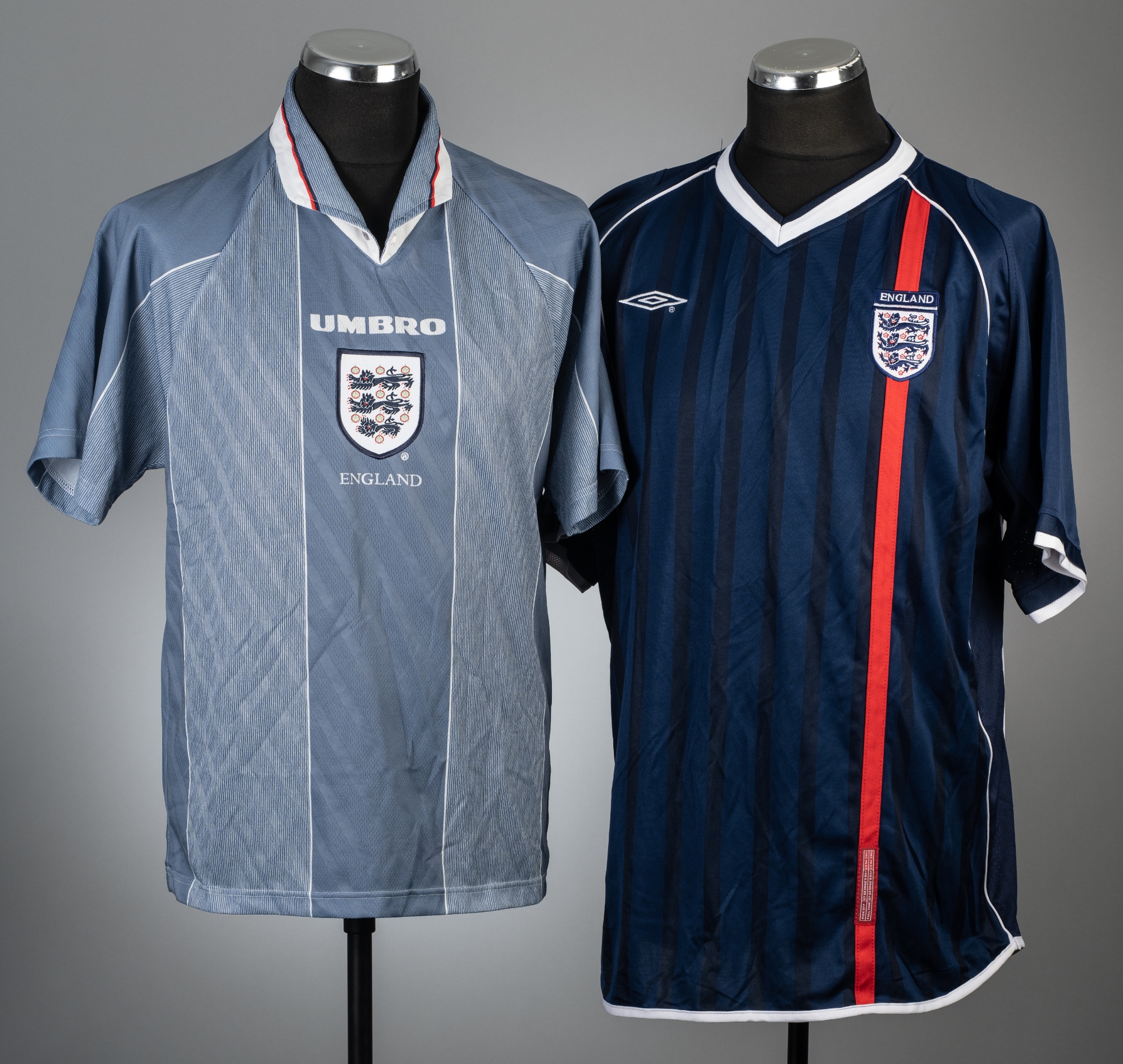 TWO RETRO ENGLAND SHIRTS INCLUDING 1996 EUROPEAN CHAMPIONSHIP SHIRT, TOTAL PF TWO SHIRTS, (2)