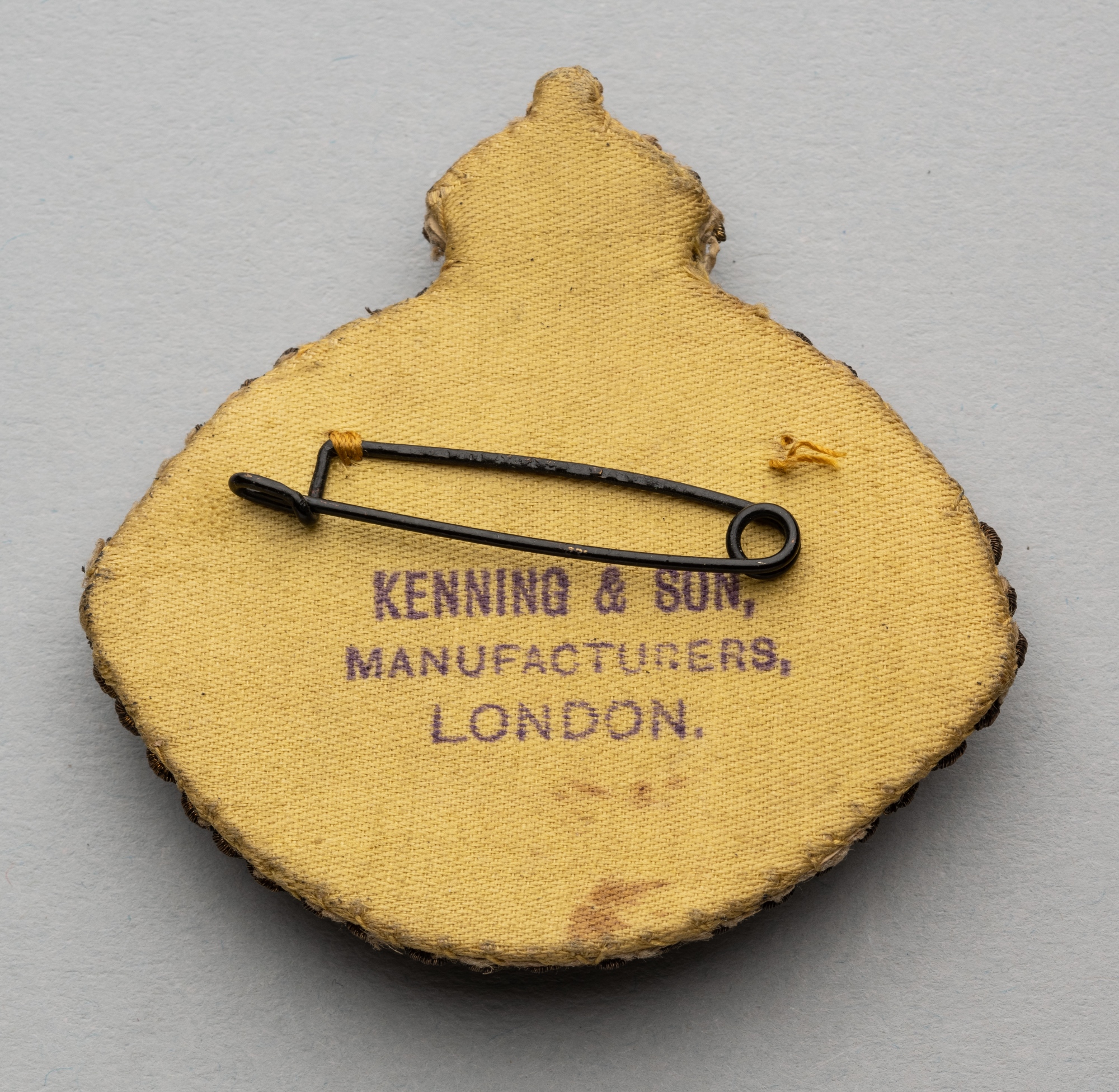 England v Scotland badge for Home International Championship, played at Bramall Lane, 4th April 1903, silk and wirework badge with ENGLAND v SCOTLAND 1903 and three lion emblem, reverse with lapel pin clasp and makers stamp KENNING & SON, 60 by 60mm., in good condition Scotland defeated England 2-1.