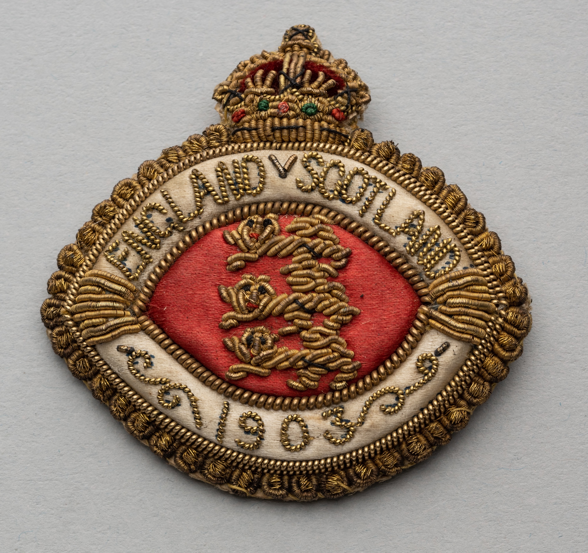 England v Scotland badge for Home International Championship, played at Bramall Lane, 4th April 1903, silk and wirework badge with ENGLAND v SCOTLAND