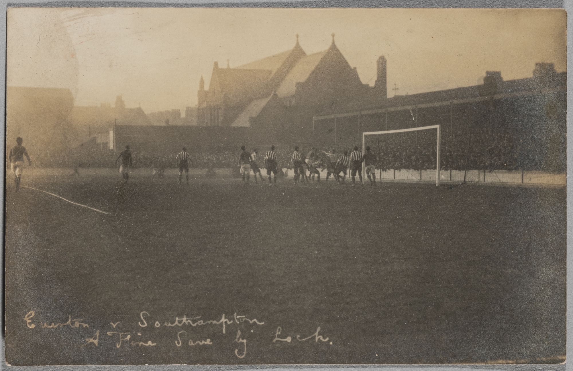 Everton v Southampton match postcard, circa 1900s, possibly the fixture on 7th March 1908, featuring match action, 9 by 14cm.