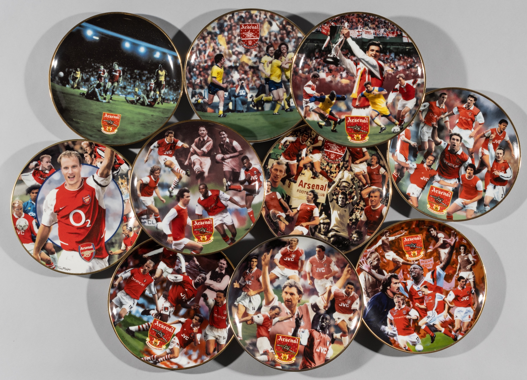 Selection of Arsenal FC football players commemorative plates by Danbury mint, players include Bergkamp, Arsenal Heroes, 1997-98 Double, Great Strike