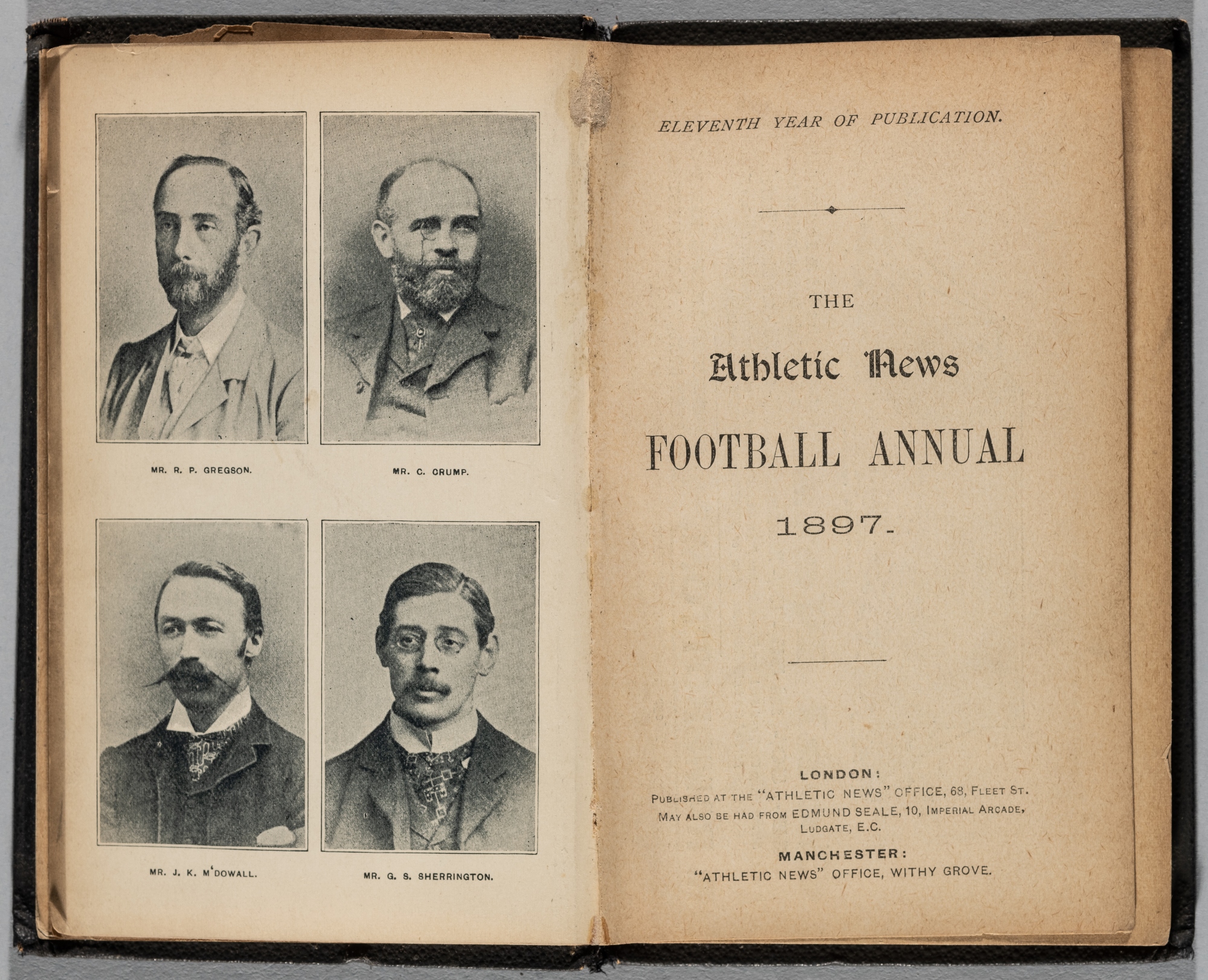 The Athletic News Football Annual 1897, eleventh year of publication, hardback, 222-pages, featuring association fixtures and results, spine with gil