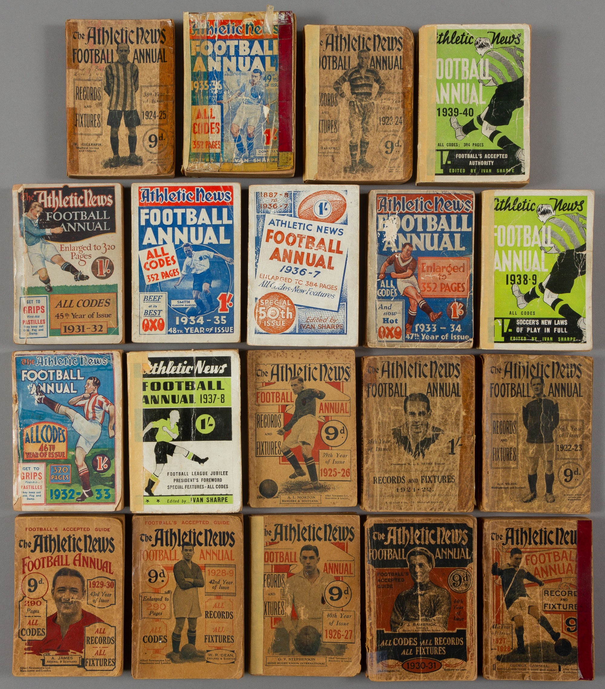 Collection of Athletic News Football annuals, continuous run from 1921-22 to 1939-40, 19 editions, various condition, but all are complete, some hav