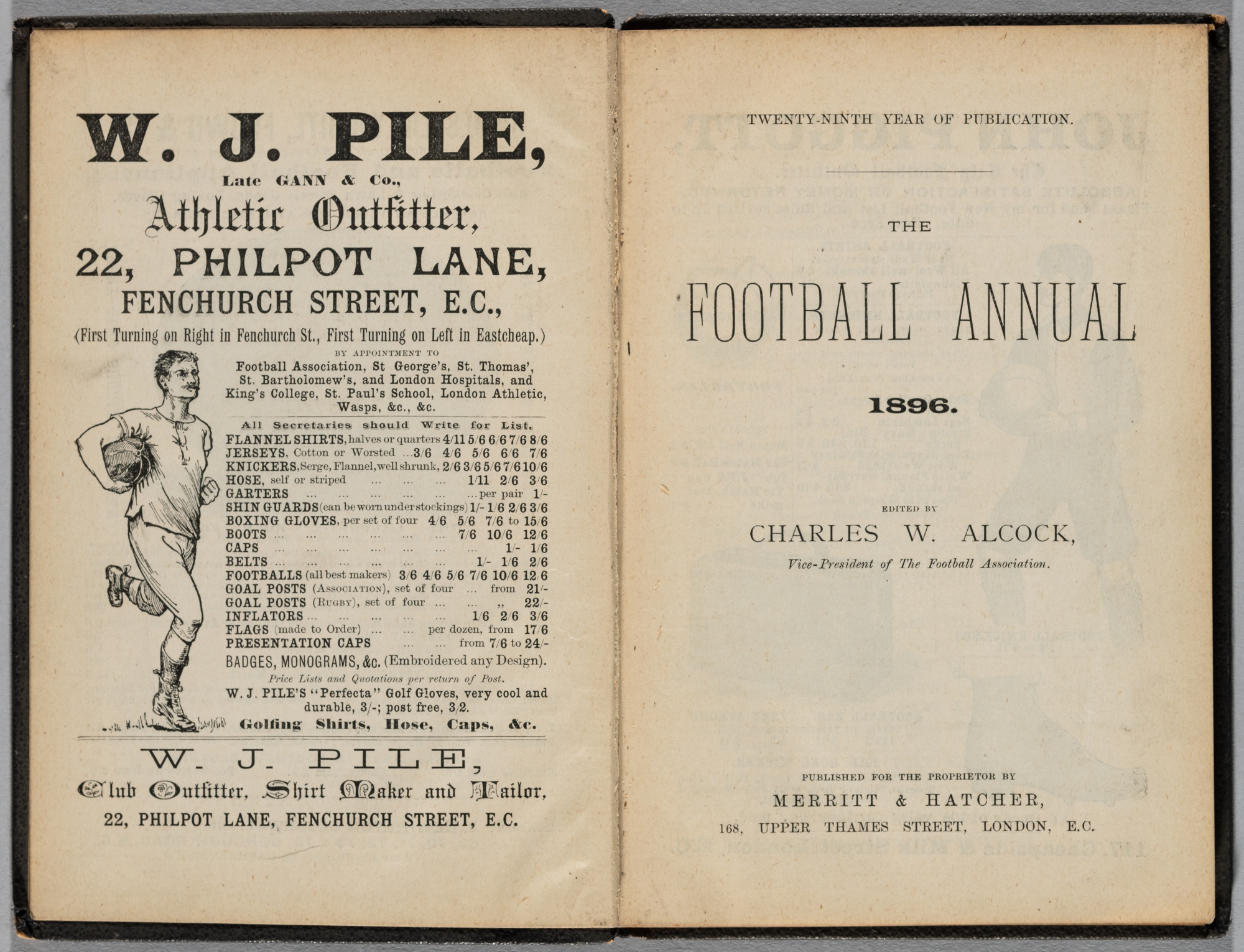 The Football Annual 1896, edited by Charles W. Alcock, published by Merrritt & Hatcher, London, twenty-ninth edition, 154-pages with hardcover, featu