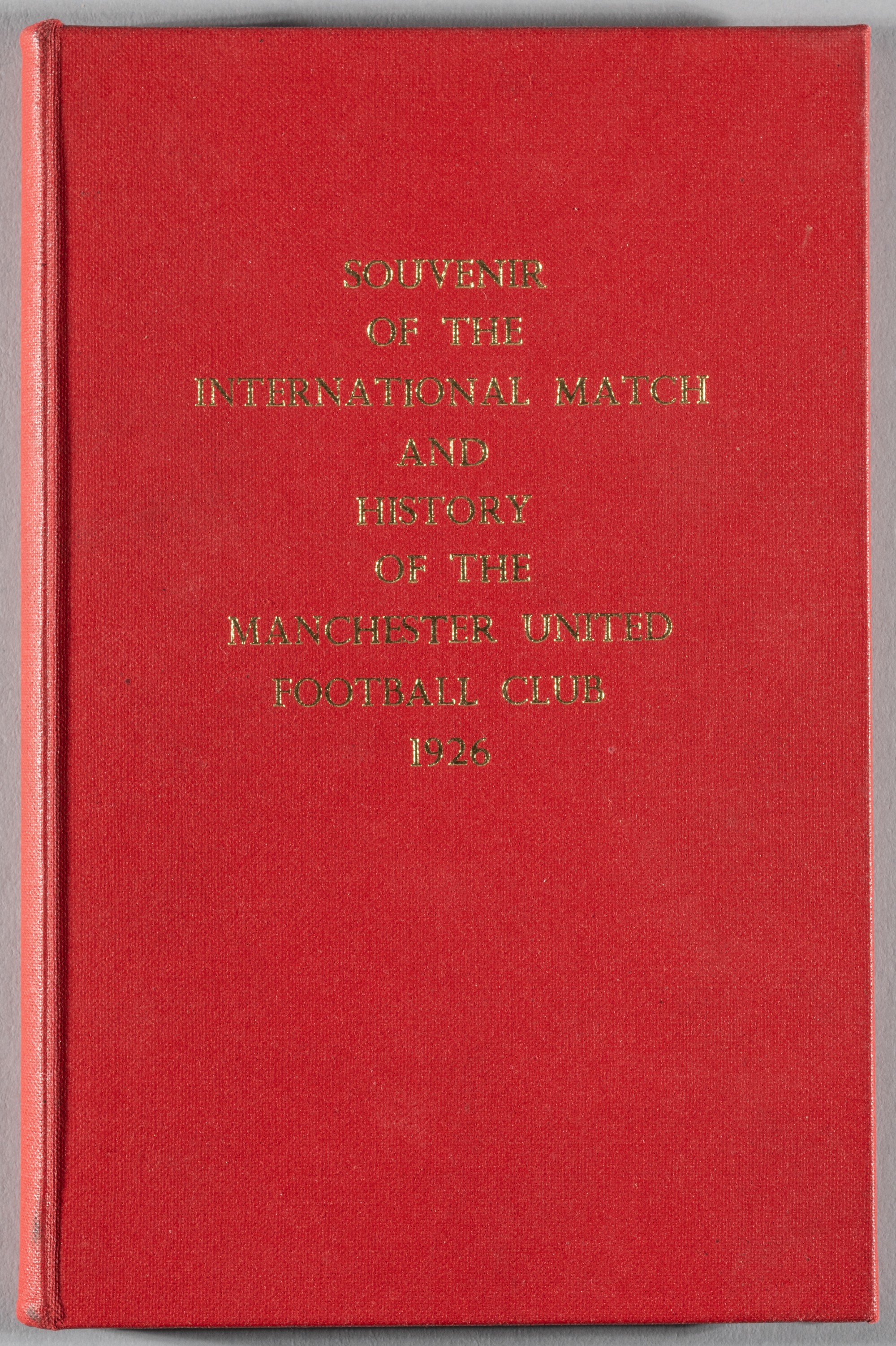1926 England v Scotland at Old Trafford international football match souvenir, the superbly bound volume also contains the history of Manchester United from Newton Heath times, red re-bound hardcover with gilt tooling, 99-page, bearing wear and some paper loss to inside back page This is the first ever international played at Old Trafford